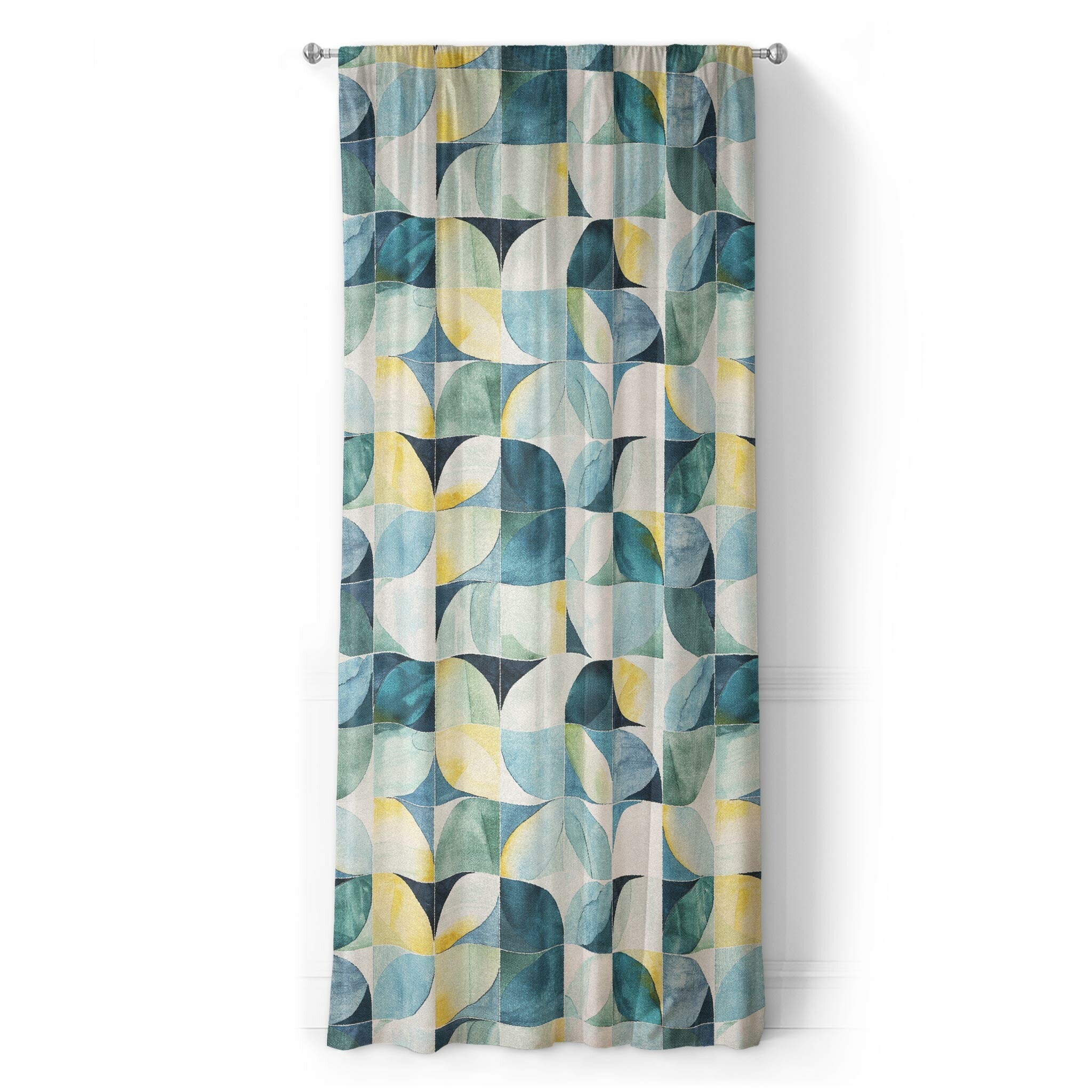 Aeolus is a modern geometric composition built on layered curves, negative space, and a breezy palette of blues, greens, and soft yellow tones. The repeating forms create a natural rhythm and sense of movement, making it ideal for modern, mid-century, or Scandinavian-inspired interiors. Balanced and airy, it adds interest without overwhelming. A clean, versatile visual statement for any space.