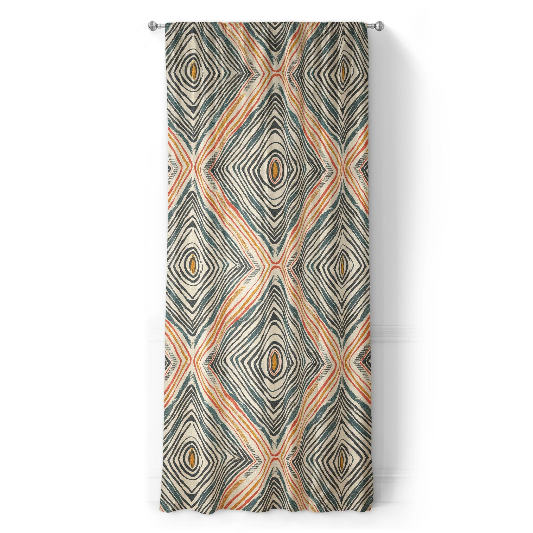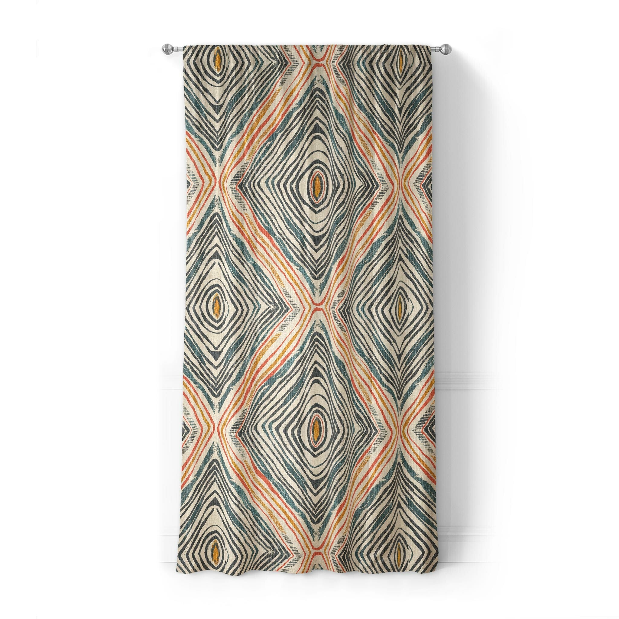 Each panel is hemmed and finished with a 4" rod pocket that fits most standard curtain rods. Just slide them on and let the artwork do the heavy lifting. Available in two lengths to fit your space and make your guests ask "where'd you get those curtains?".
