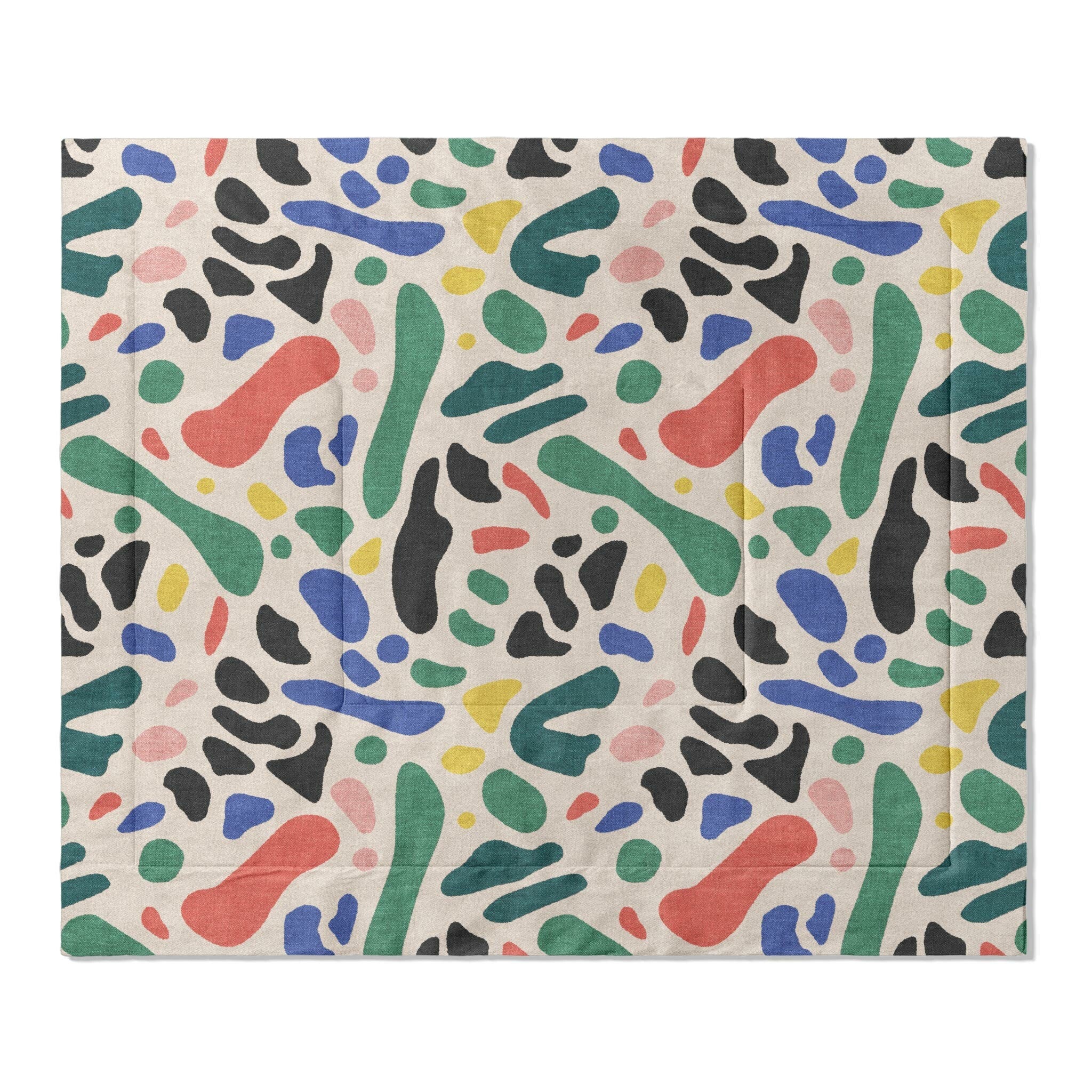Bring a sense of playful movement to your space with Aurelio. This is a modern abstract design that feels both spontaneous and intentional. The bold, biomorphic shapes in earthy greens, reds, yellows, blues, and black pop against a neutral background, creating a balanced composition that complements maximalist, minimalist, or midcentury modern aesthetics. It’s the kind of statement piece that works in creative studios, cozy reading nooks, or stylish living rooms. A perfect match for lovers of modern art and colorful home decor.