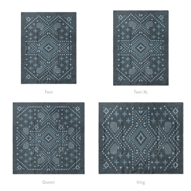 Our comforters are quilted with a double square pattern that keeps the fill evenly distributed and the shape intact so there won't be any bunching or thinning. The design is dye-sublimated directly into the fabric for lasting color that won’t fade, crack, or peel with use or washing.