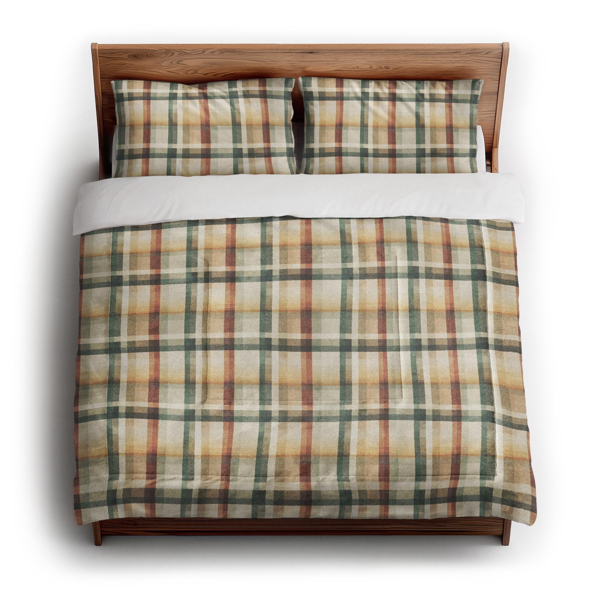 Madras Plaid Taupe Green Comforter