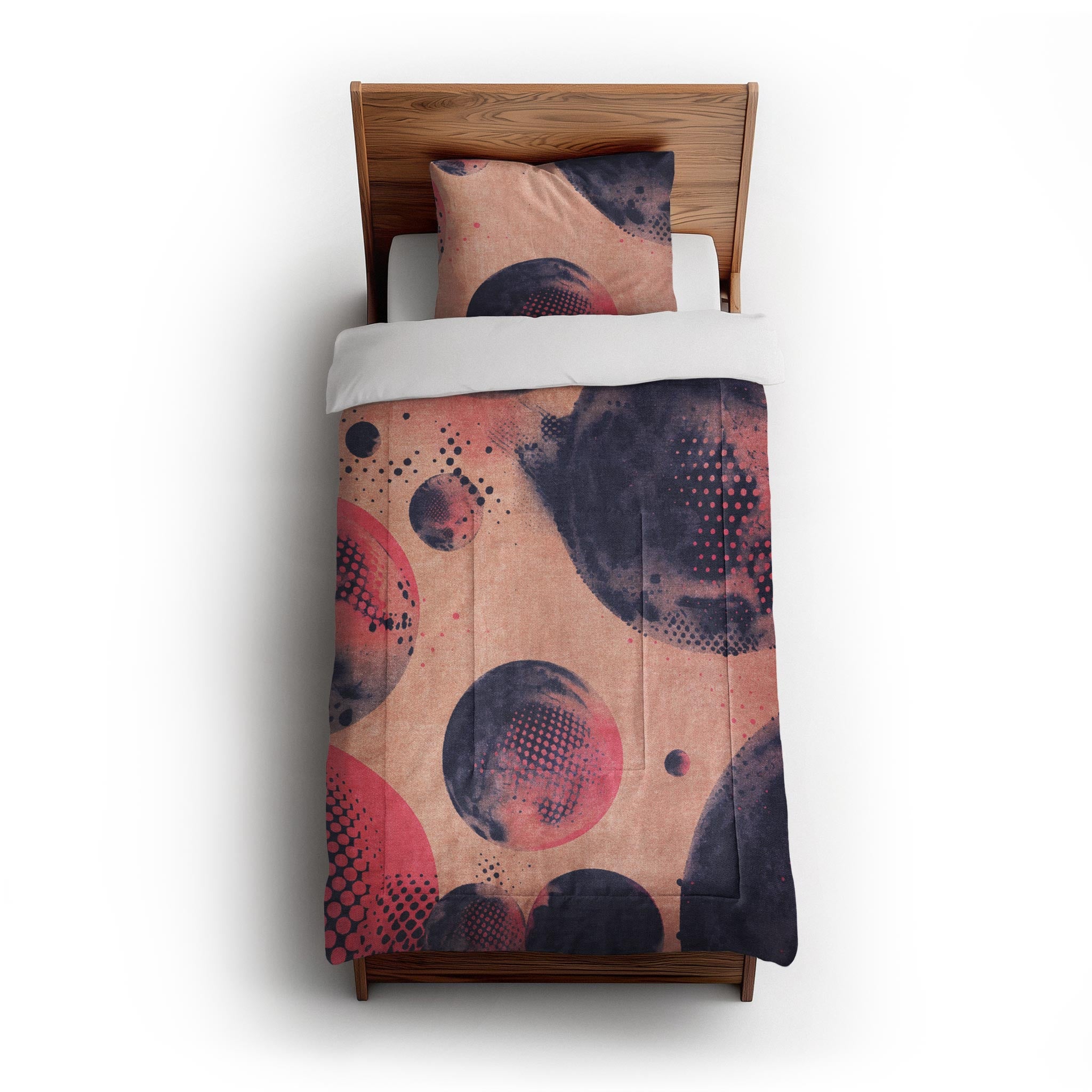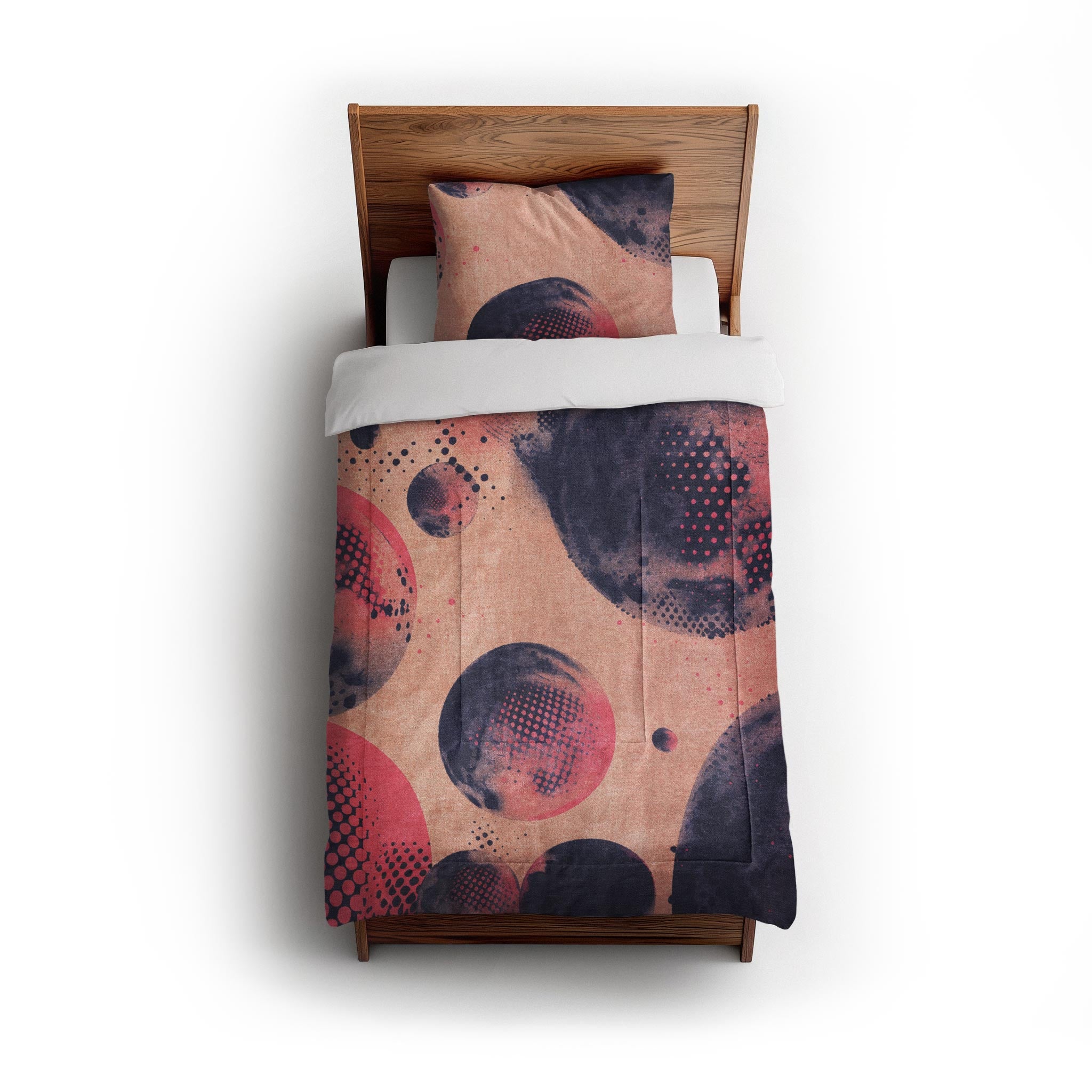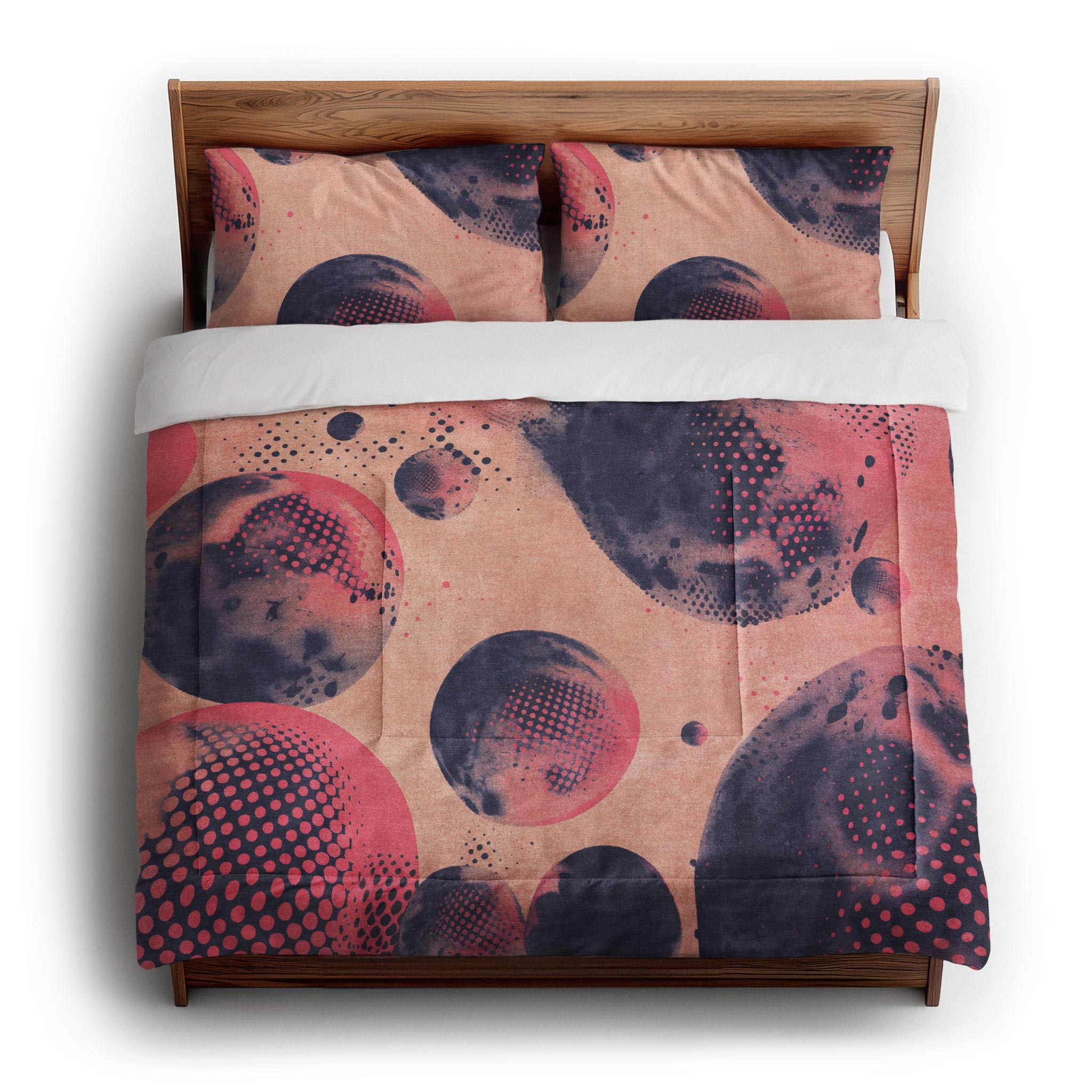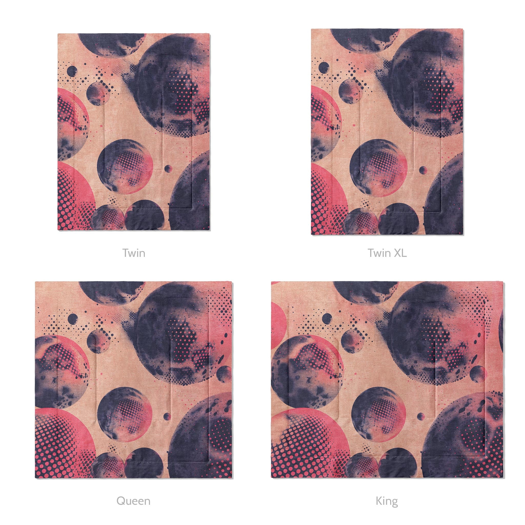 Our comforters are quilted with a double square pattern that keeps the fill evenly distributed and the shape intact so there won't be any bunching or thinning. The design is dye-sublimated directly into the fabric for lasting color that won’t fade, crack, or peel with use or washing.