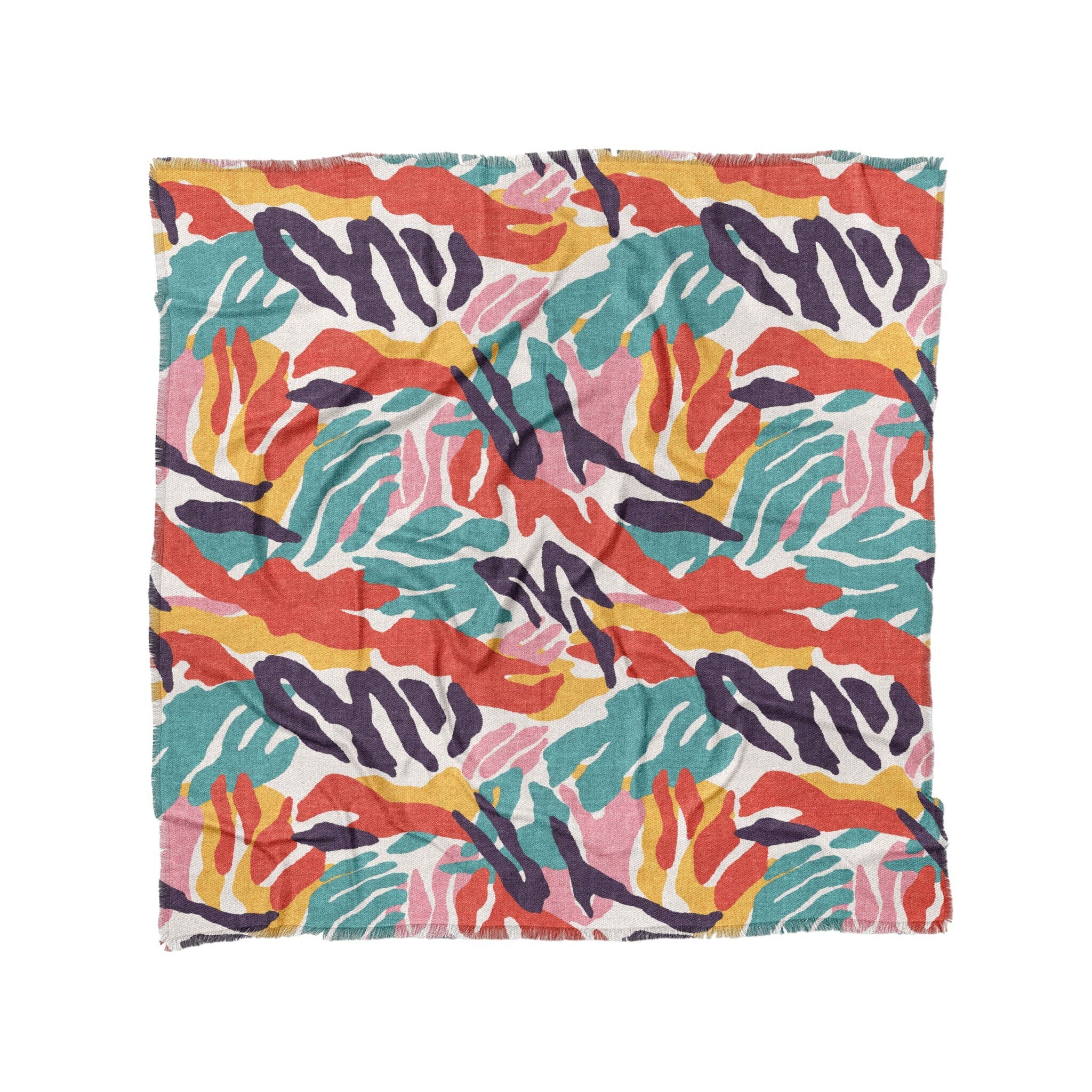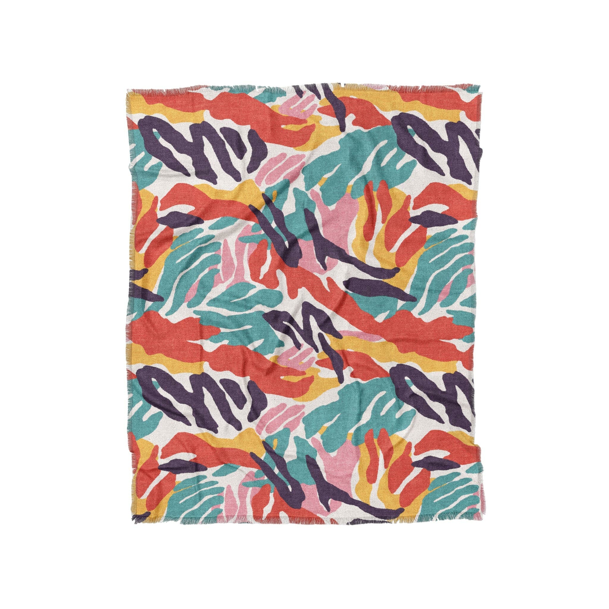 Woven polyester with a soft drape and eye-catching texture, finished with a 1" printed fringe for just the right amount of flair. Features vivid dye-sublimated artwork on the front and a white and grey woven backing for contrast. Lightweight but substantial, it’s perfect as a bed layer, sofa accent, or statement piece anywhere you want art to meet comfort.