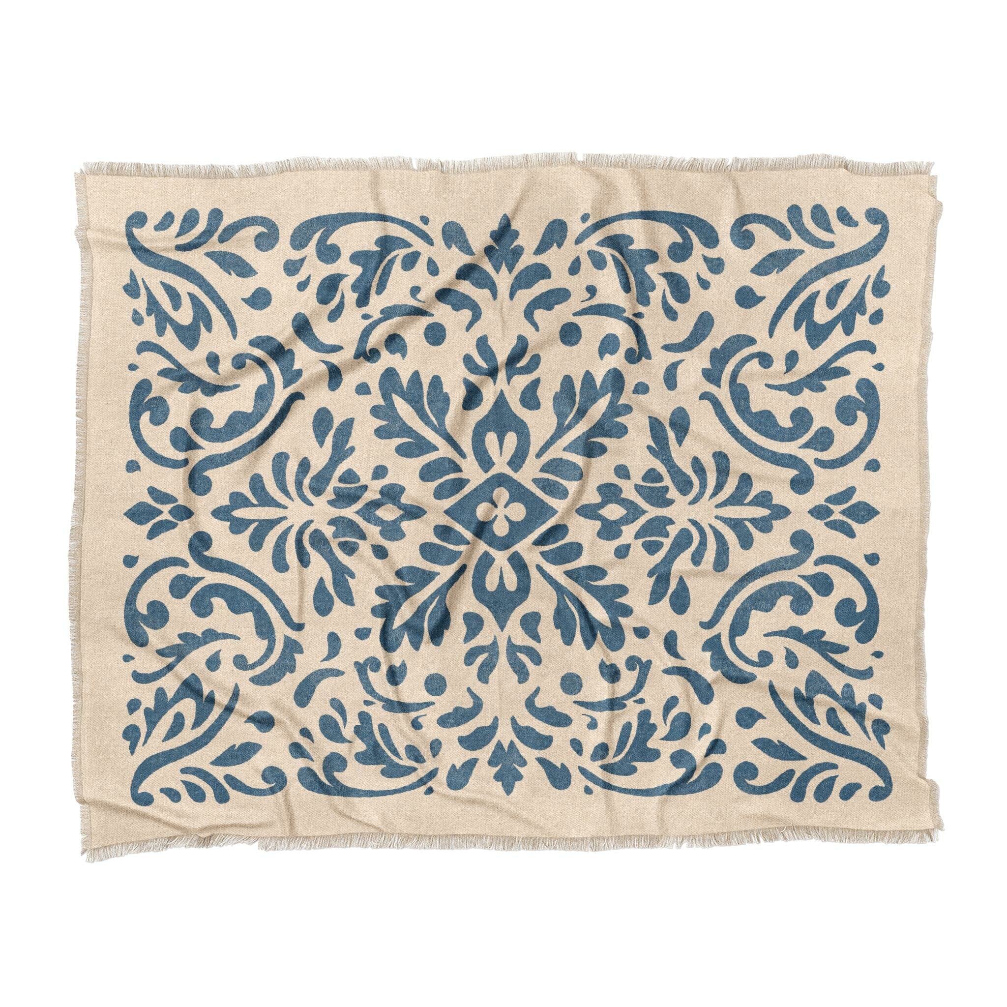 Woven polyester with a soft drape and eye-catching texture, finished with a 1" printed fringe for just the right amount of flair. Features vivid dye-sublimated artwork on the front and a white and grey woven backing for contrast. Lightweight but substantial, it’s perfect as a bed layer, sofa accent, or statement piece anywhere you want art to meet comfort.