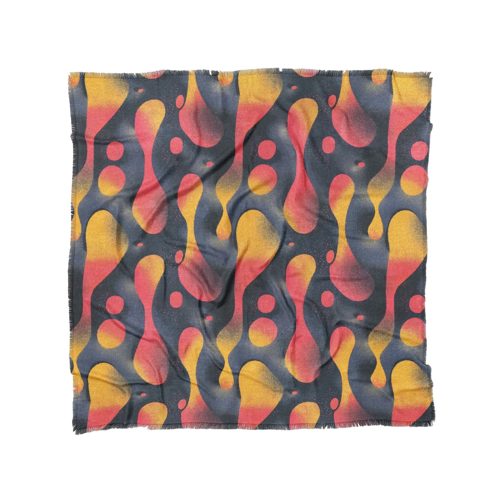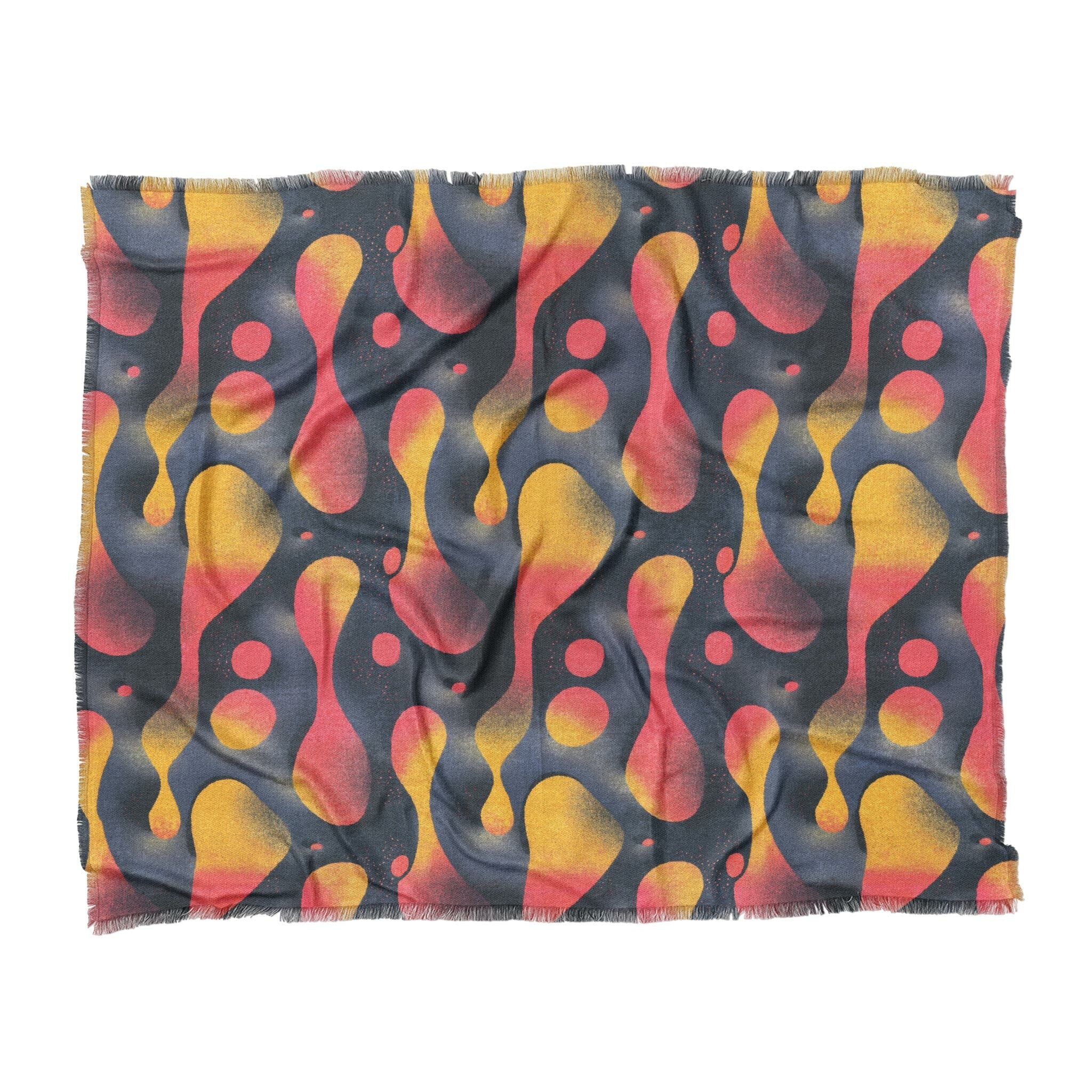Woven polyester with a soft drape and eye-catching texture, finished with a 1" printed fringe for just the right amount of flair. Features vivid dye-sublimated artwork on the front and a white and grey woven backing for contrast. Lightweight but substantial, it’s perfect as a bed layer, sofa accent, or statement piece anywhere you want art to meet comfort.