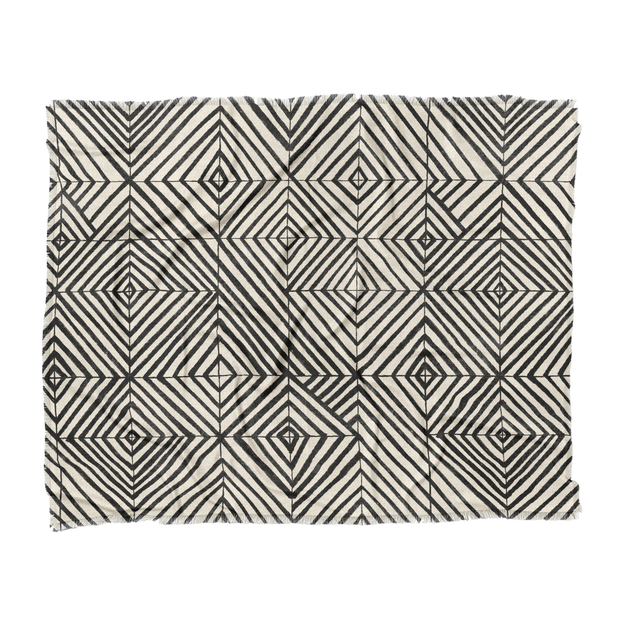 Woven polyester with a soft drape and eye-catching texture, finished with a 1" printed fringe for just the right amount of flair. Features vivid dye-sublimated artwork on the front and a white and grey woven backing for contrast. Lightweight but substantial, it’s perfect as a bed layer, sofa accent, or statement piece anywhere you want art to meet comfort.