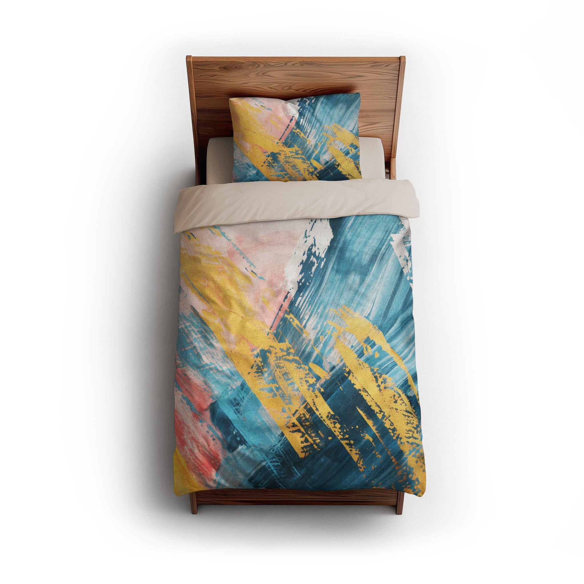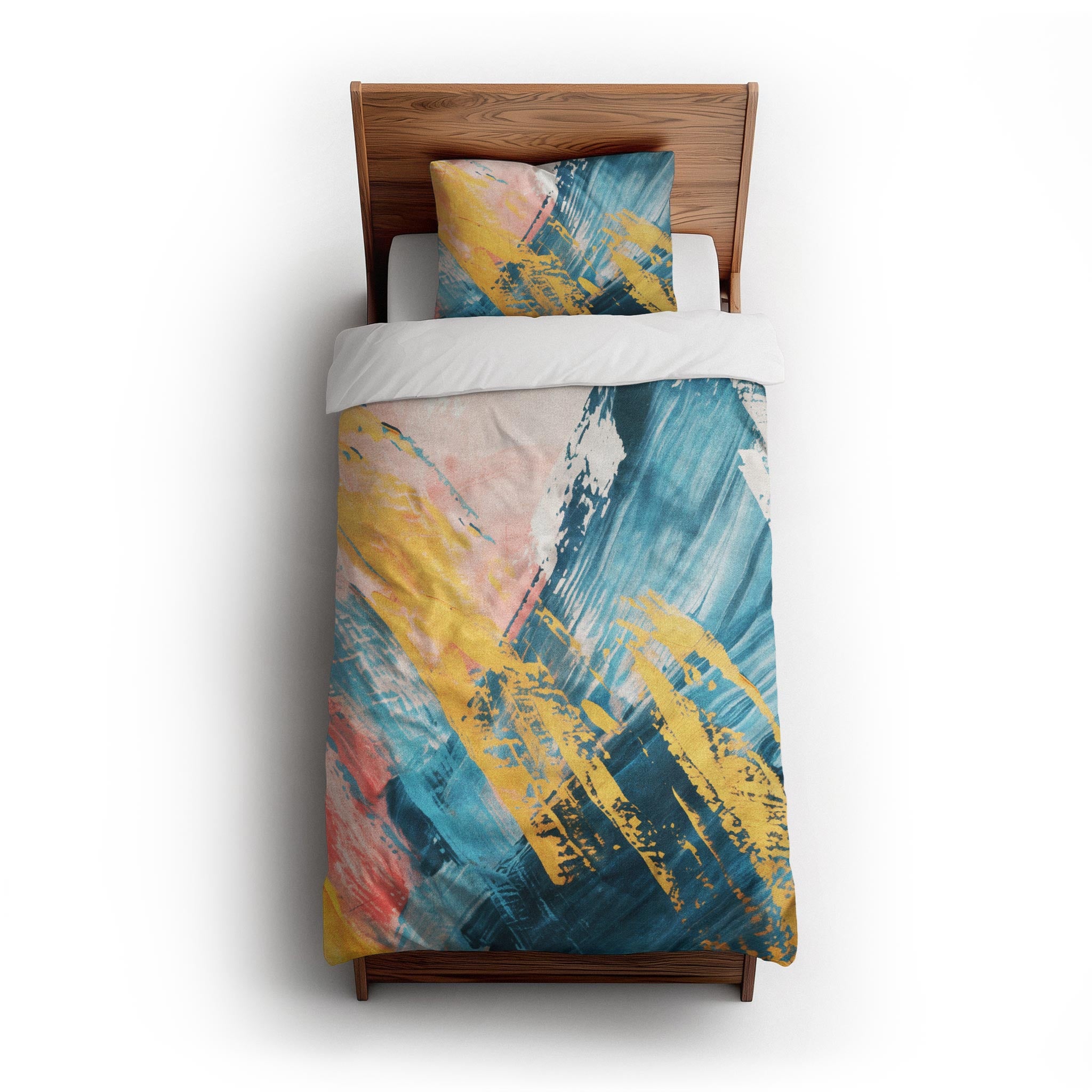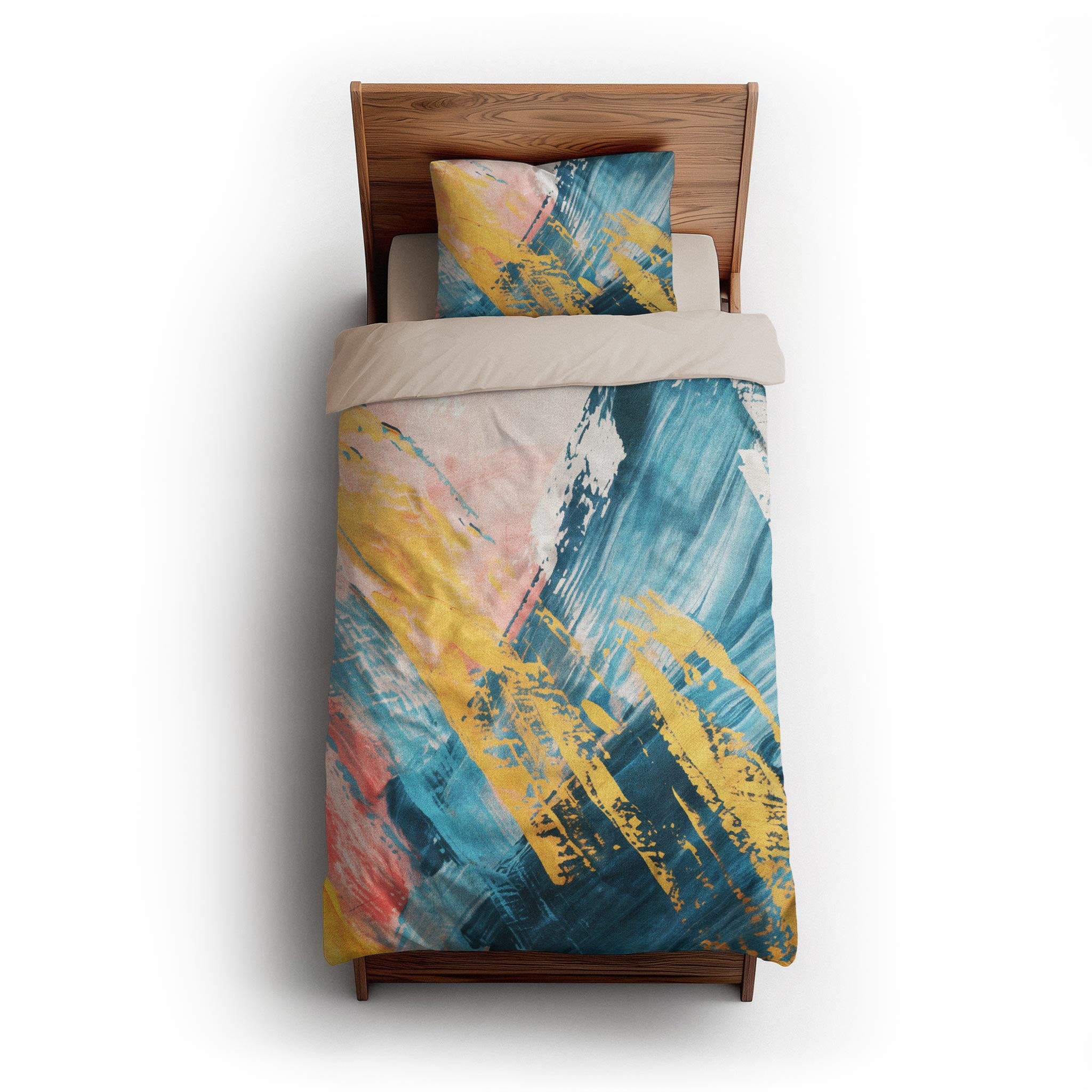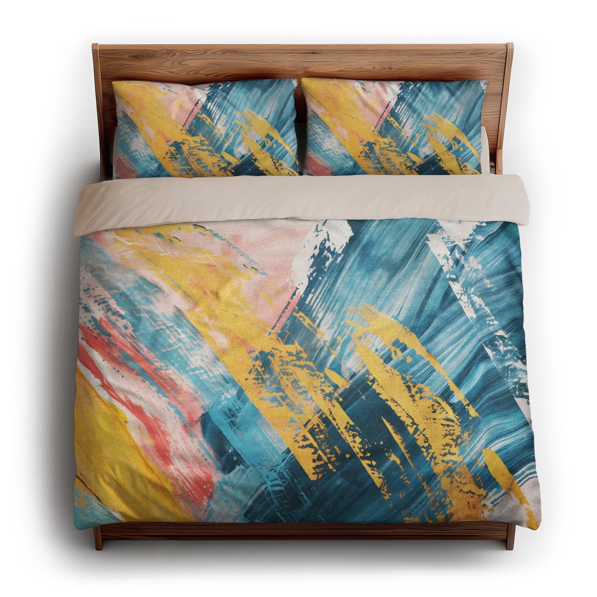 We made these for actual beds. Beds that get unmade, remade, and everything in between. The invisible zipper closure keeps it looking clean, while inside corner ties prevent bunching. Toss it in the wash, zip it back on, and it’s ready to go again. Art for your bed, without an upkeep headache.
