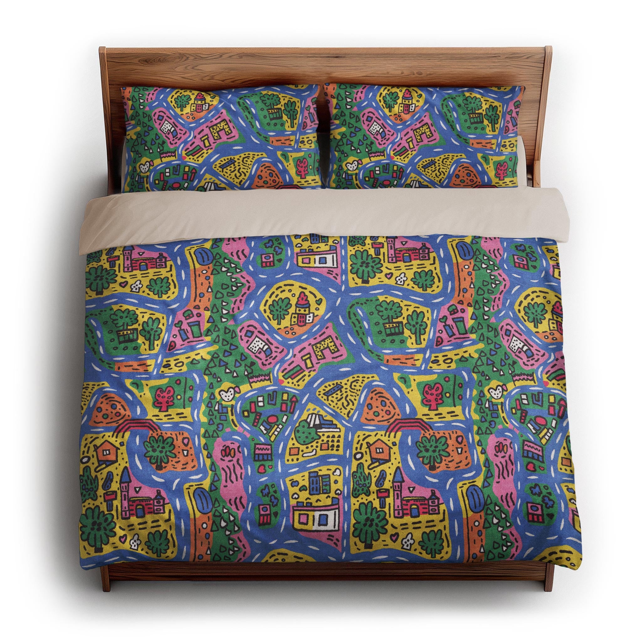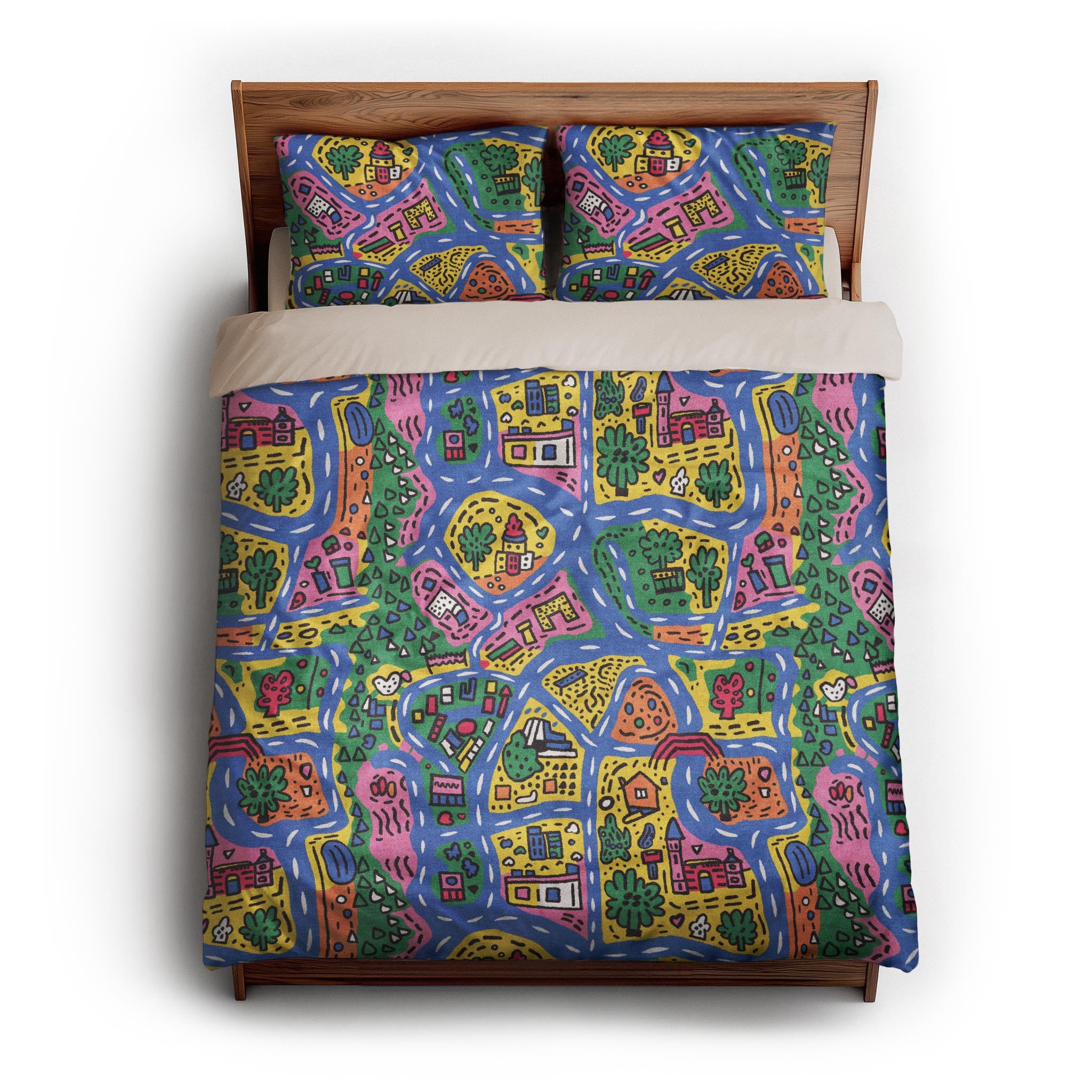 We made these for actual beds. Beds that get unmade, remade, and everything in between. The invisible zipper closure keeps it looking clean, while inside corner ties prevent bunching. Toss it in the wash, zip it back on, and it’s ready to go again. Art for your bed, without an upkeep headache.