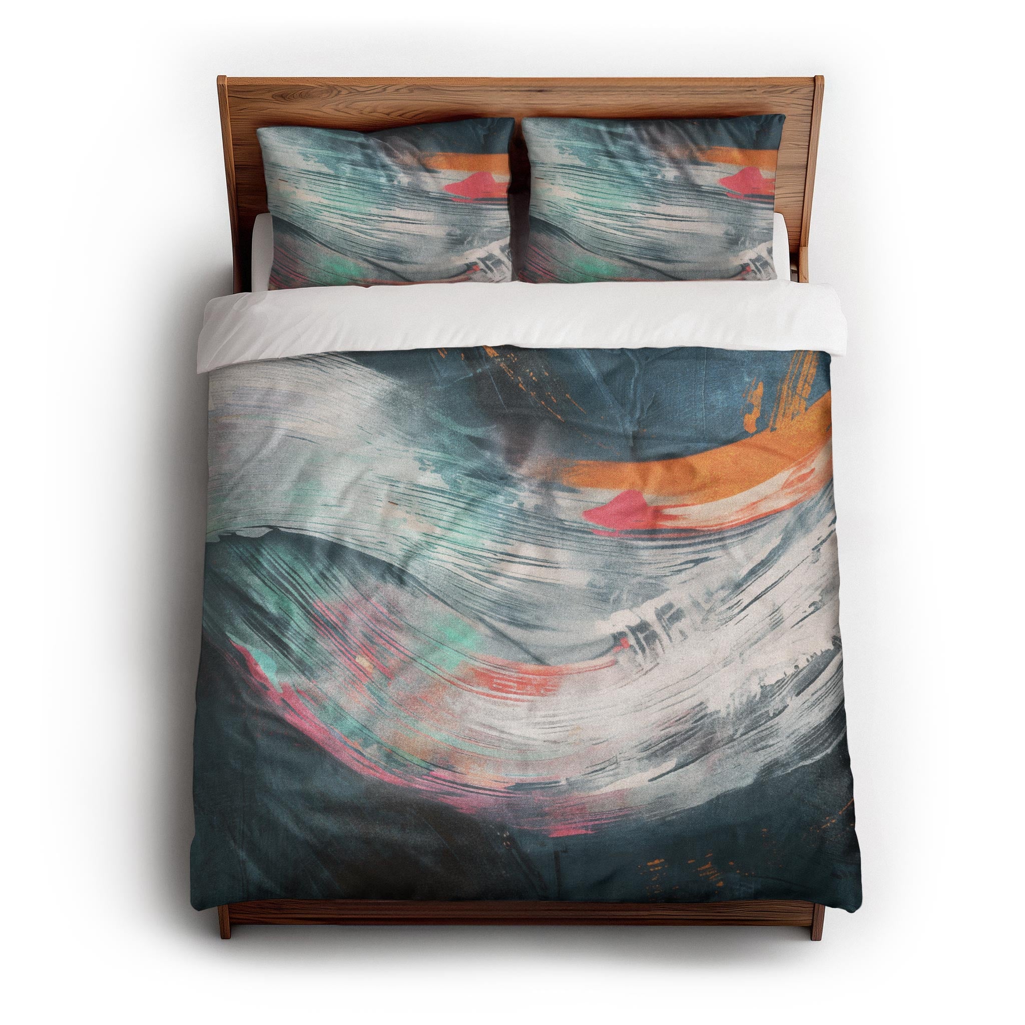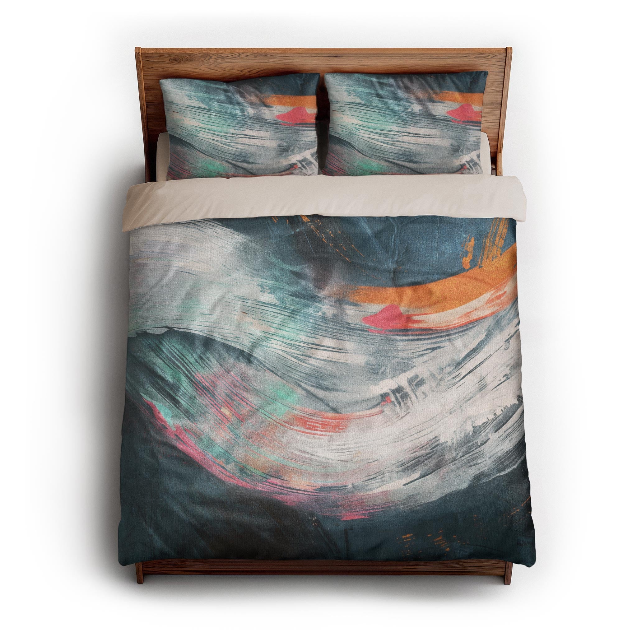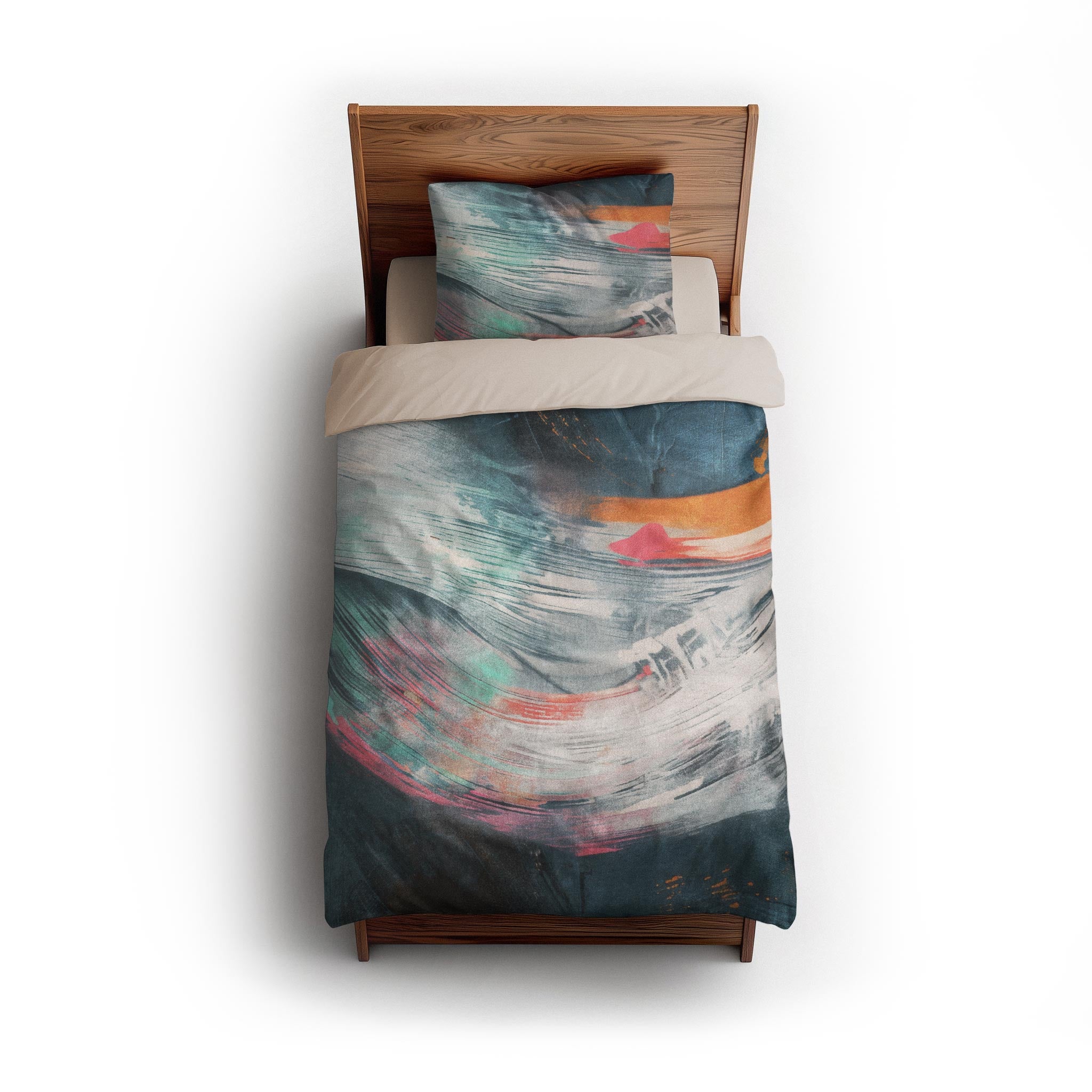 We made these for actual beds. Beds that get unmade, remade, and everything in between. The invisible zipper closure keeps it looking clean, while inside corner ties prevent bunching. Toss it in the wash, zip it back on, and it’s ready to go again. Art for your bed, without an upkeep headache.