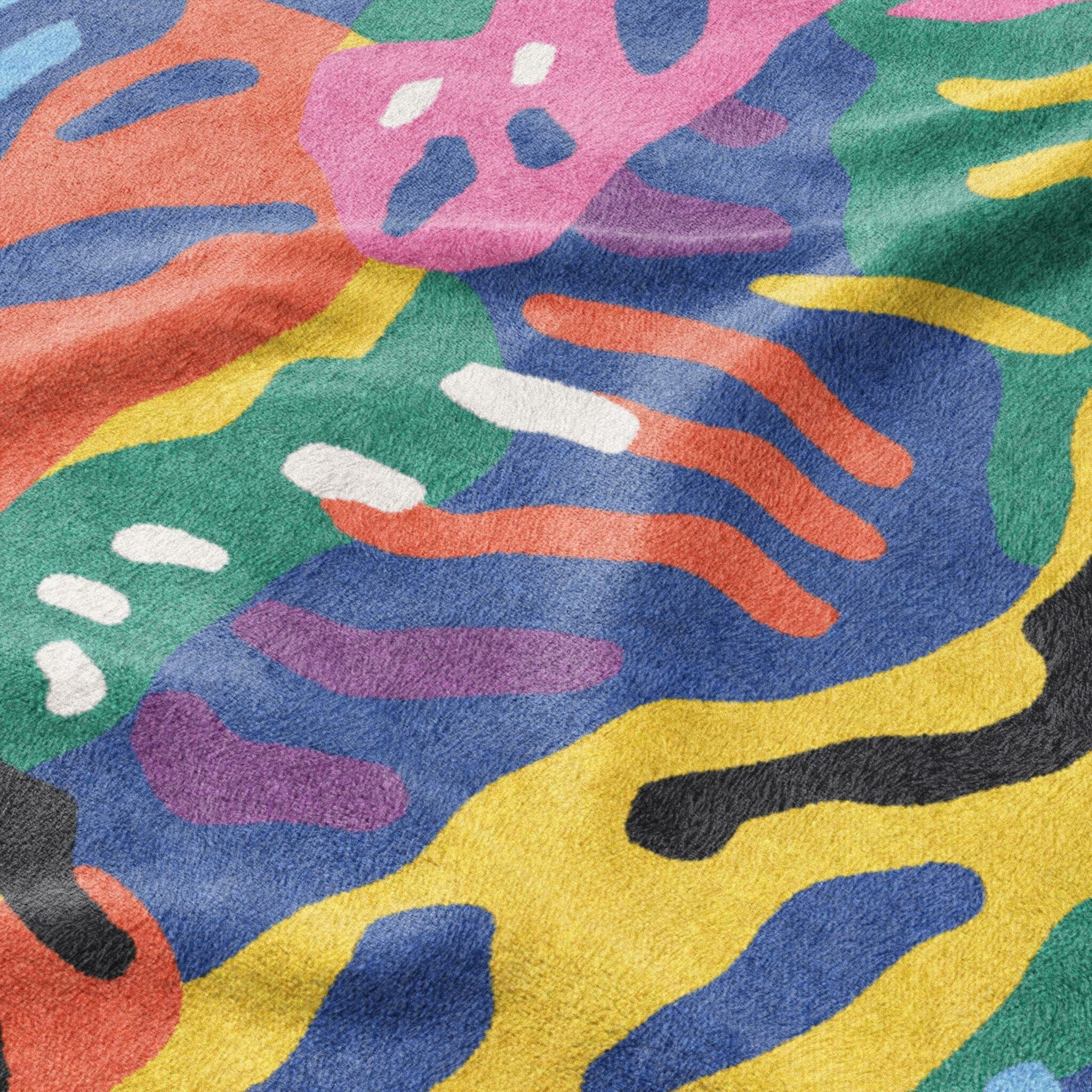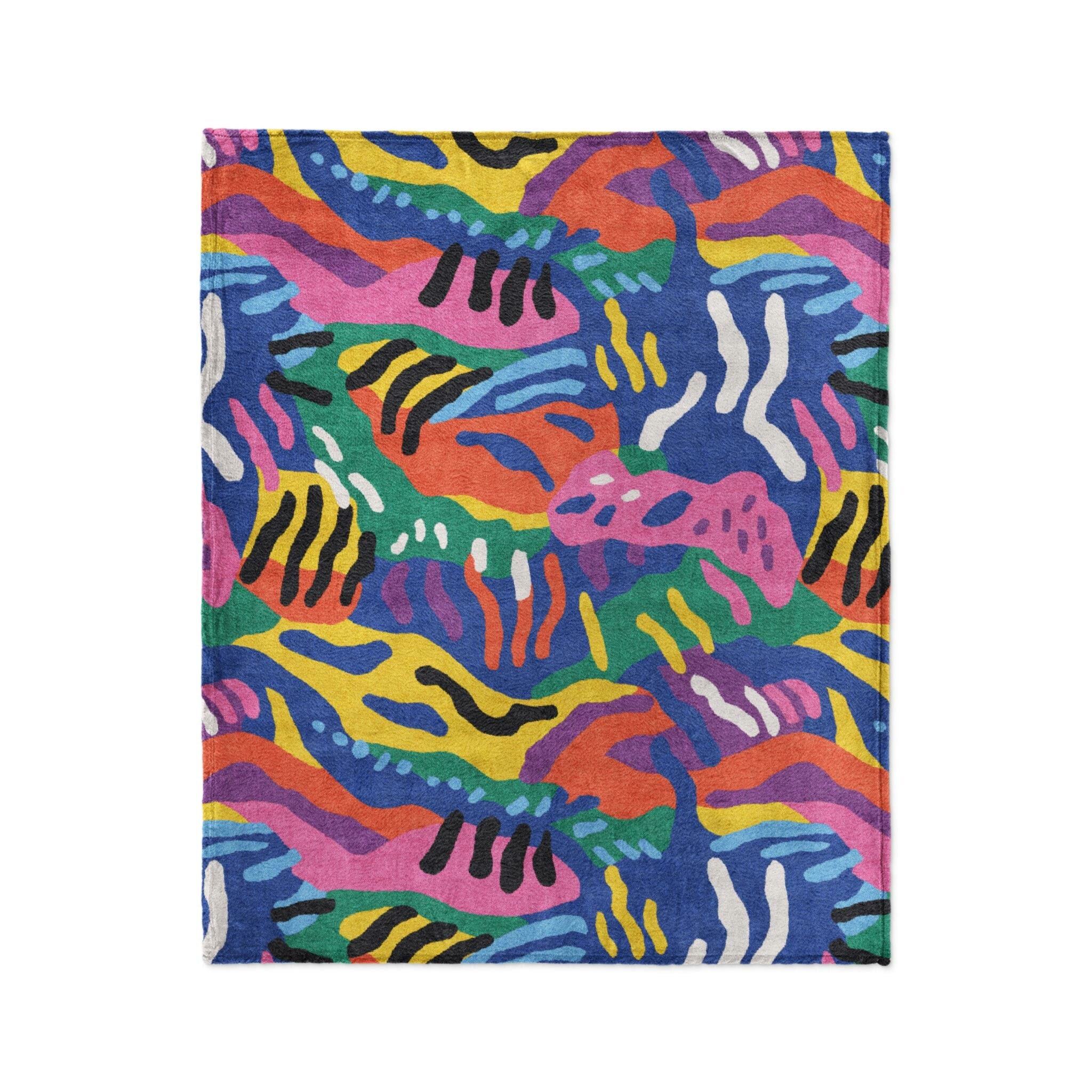 Thick, plush polyester fleece that’s made for comfort and built to last. Vivid dye-sublimated artwork on a soft, cozy surface with a hemmed edge for a clean finish. Perfect for the couch, bed, or anywhere you want to wrap yourself in warmth and good design. Available in three sizes. Not intended for cribs or babies due to its texture and warmth.