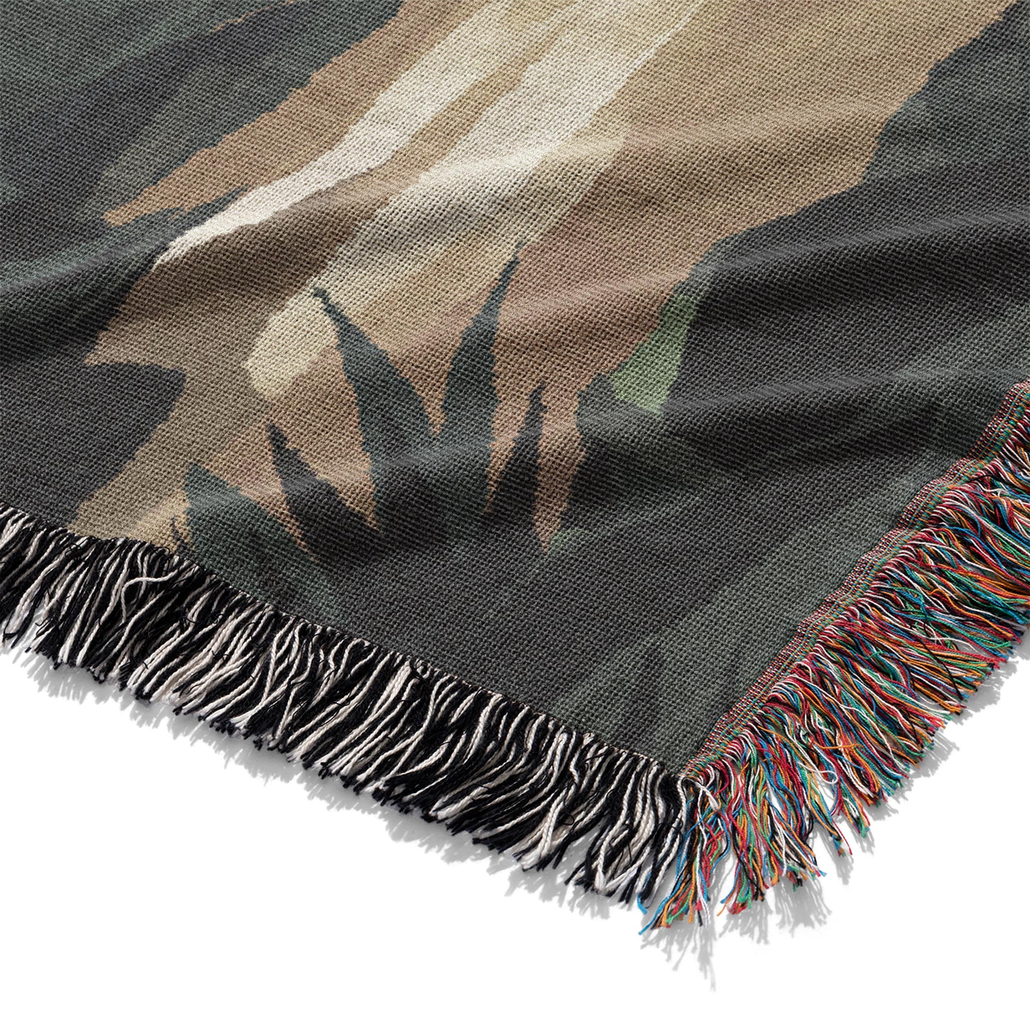 Woven from 100% cotton with the design woven directly in the fabric, this throw blends craftsmanship and comfort in equal measure. Each piece is created on a jacquard loom using richly colored threads to bring the artwork to life with texture and depth. Finished with vibrant fringed edges and available in three sizes, it’s a functional heirloom made to be seen, felt, and kept.