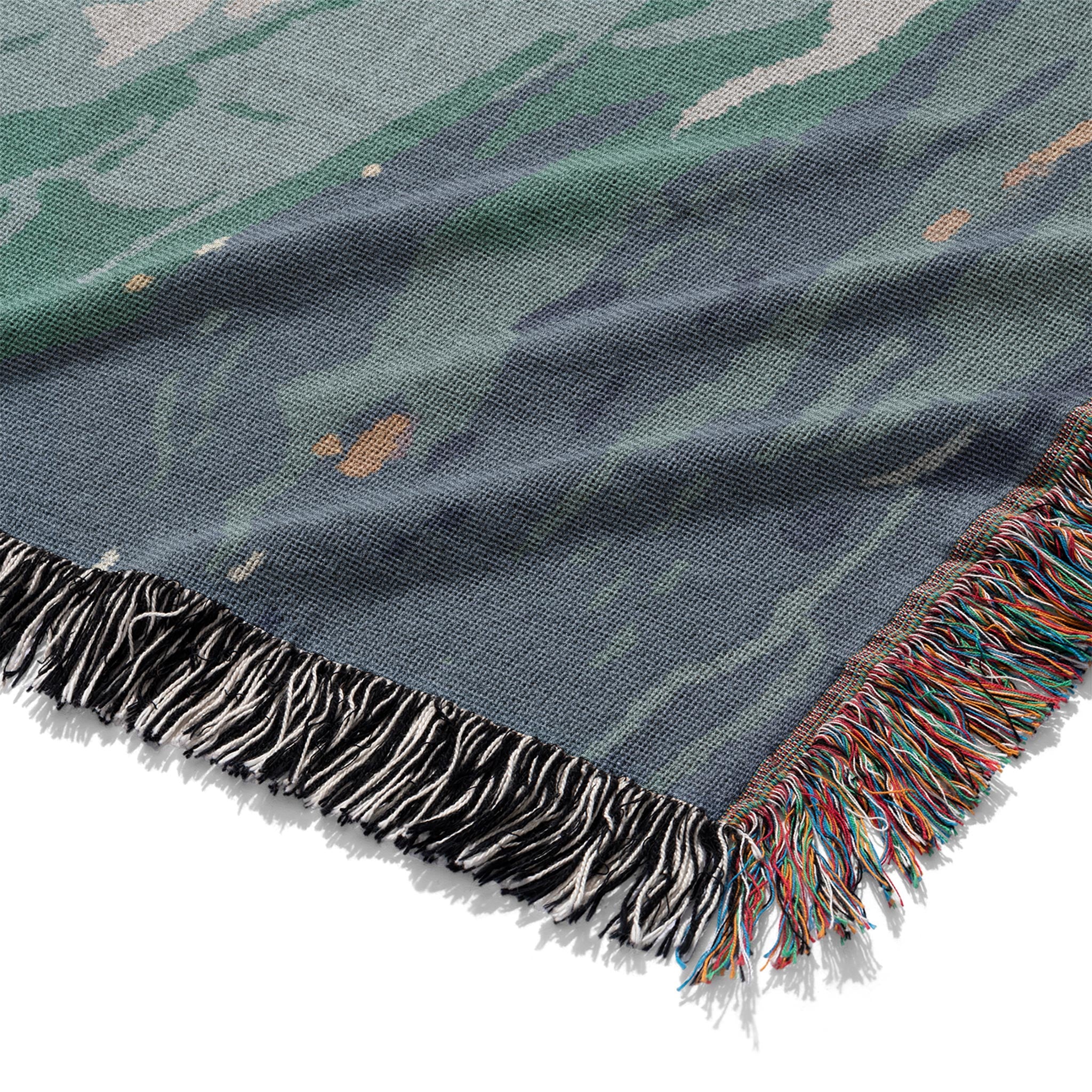 Woven from 100% cotton with the design woven directly in the fabric, this throw blends craftsmanship and comfort in equal measure. Each piece is created on a jacquard loom using richly colored threads to bring the artwork to life with texture and depth. Finished with vibrant fringed edges and available in three sizes, it’s a functional heirloom made to be seen, felt, and kept.