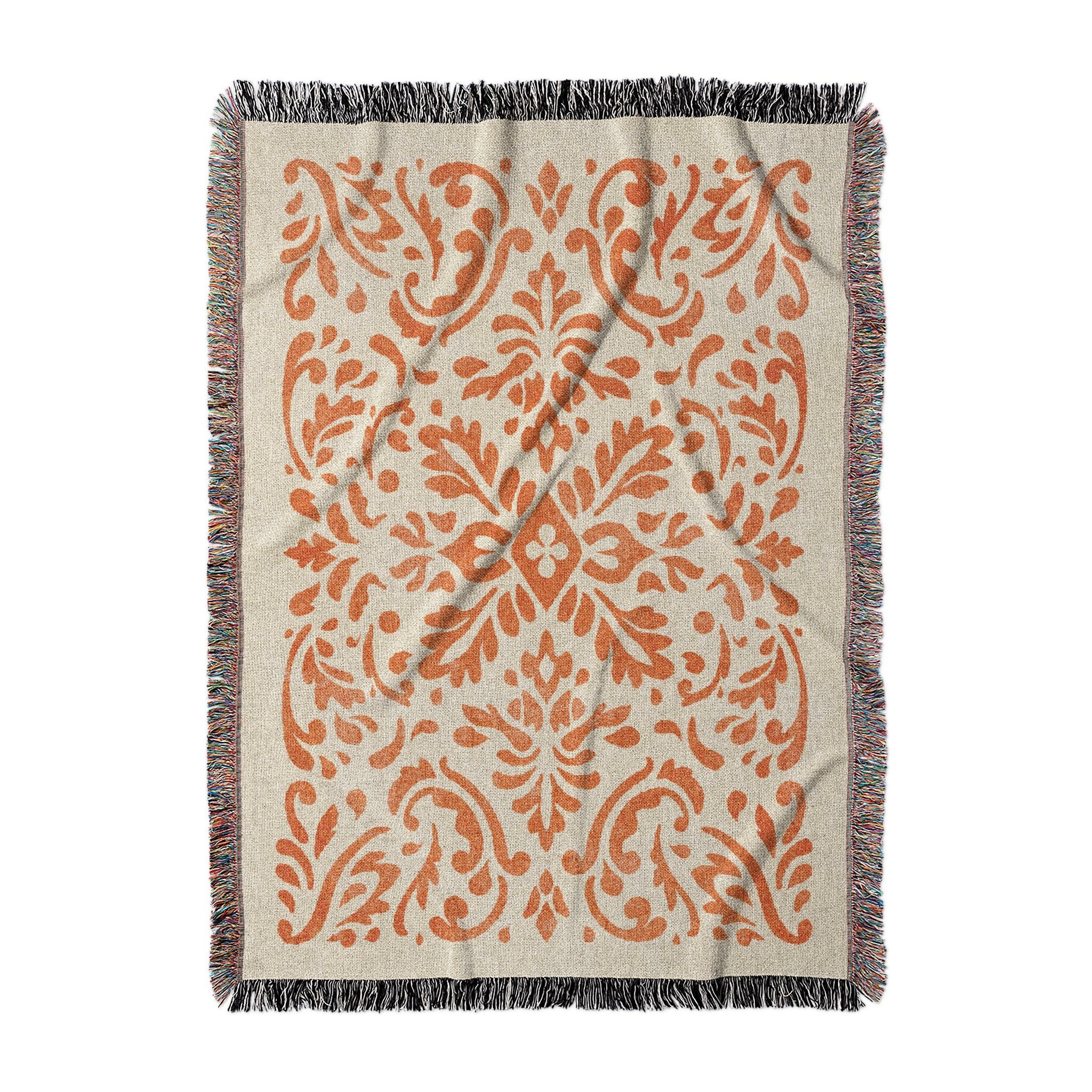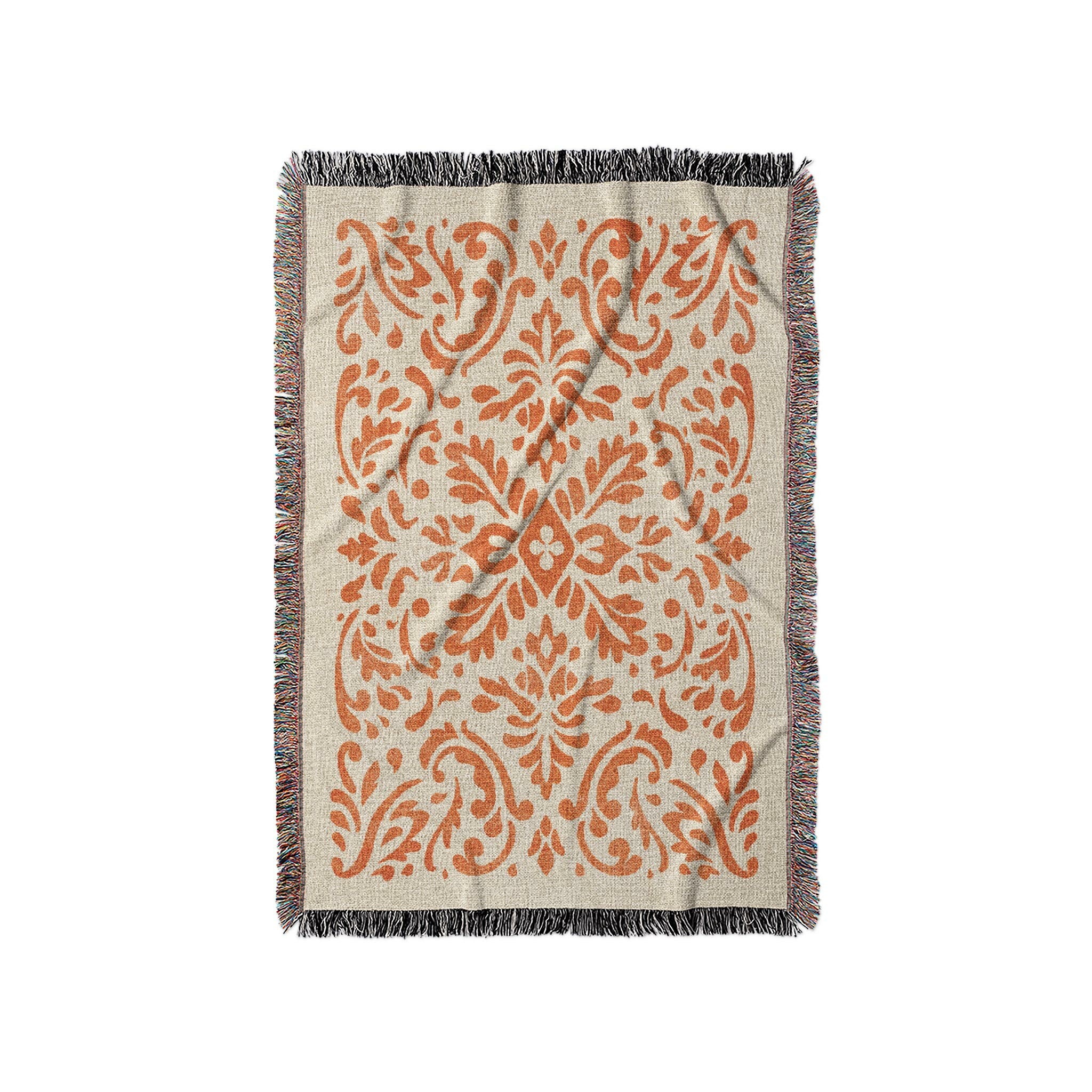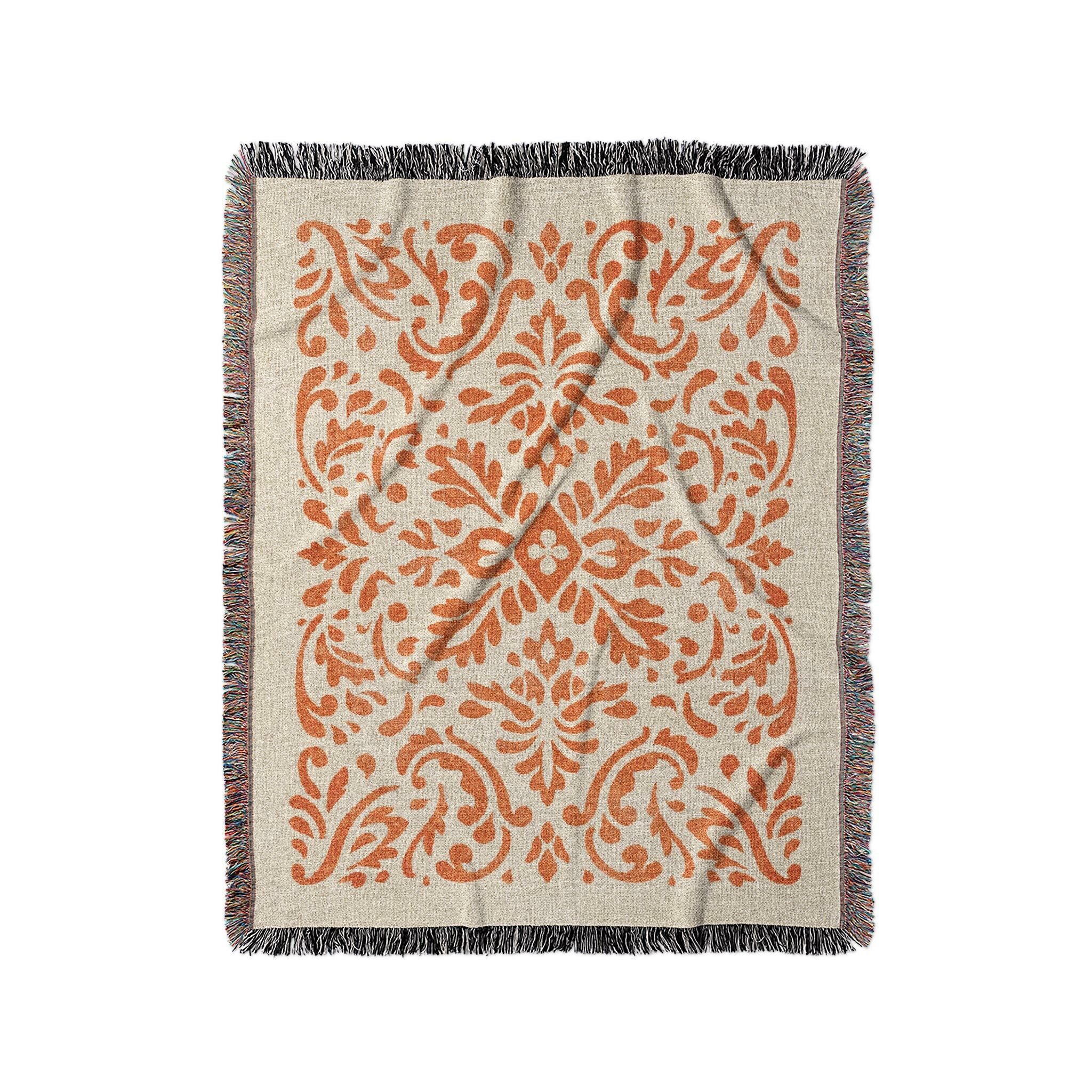 Floranna Ivory & Orange Woven Throw Blanket