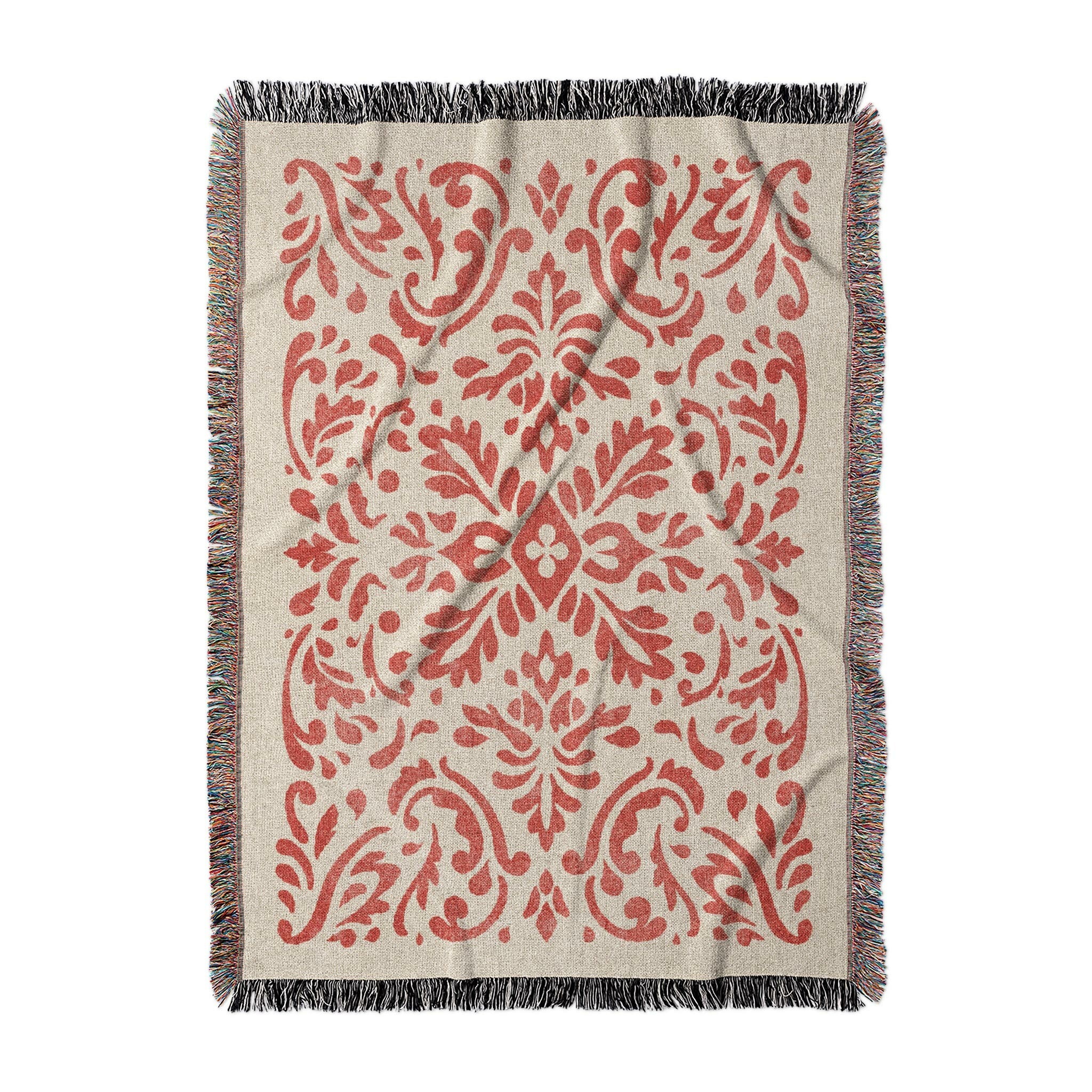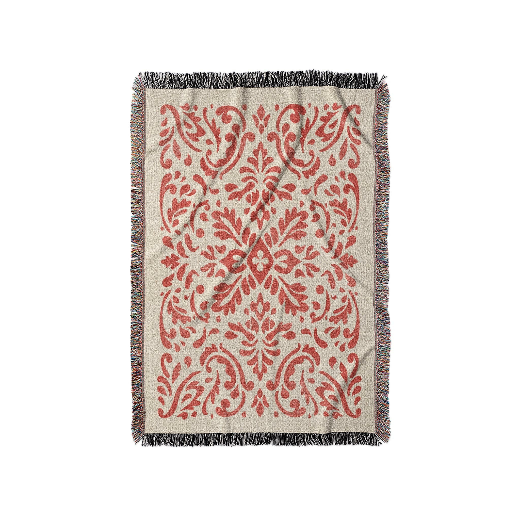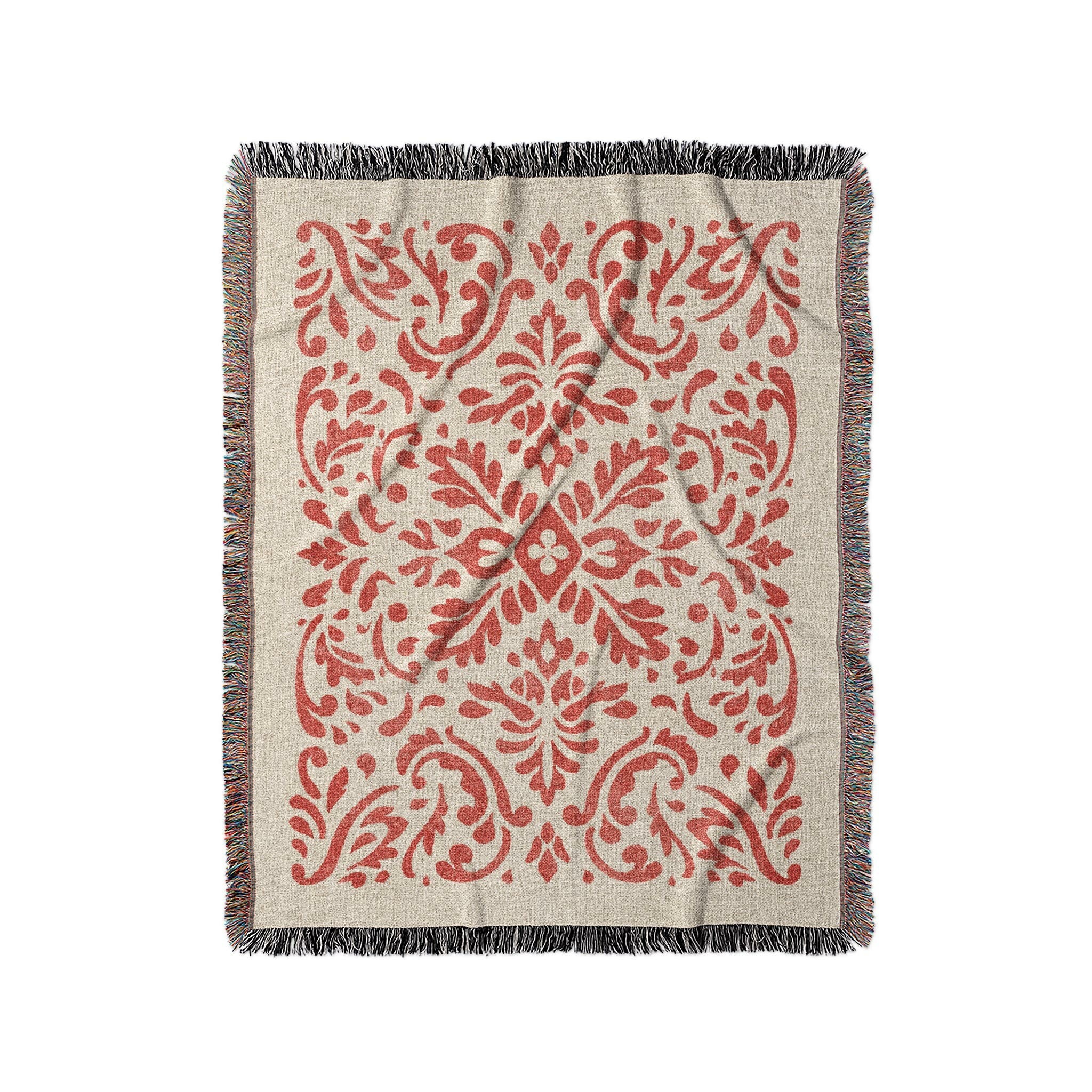 Floranna Ivory & Red Woven Throw Blanket