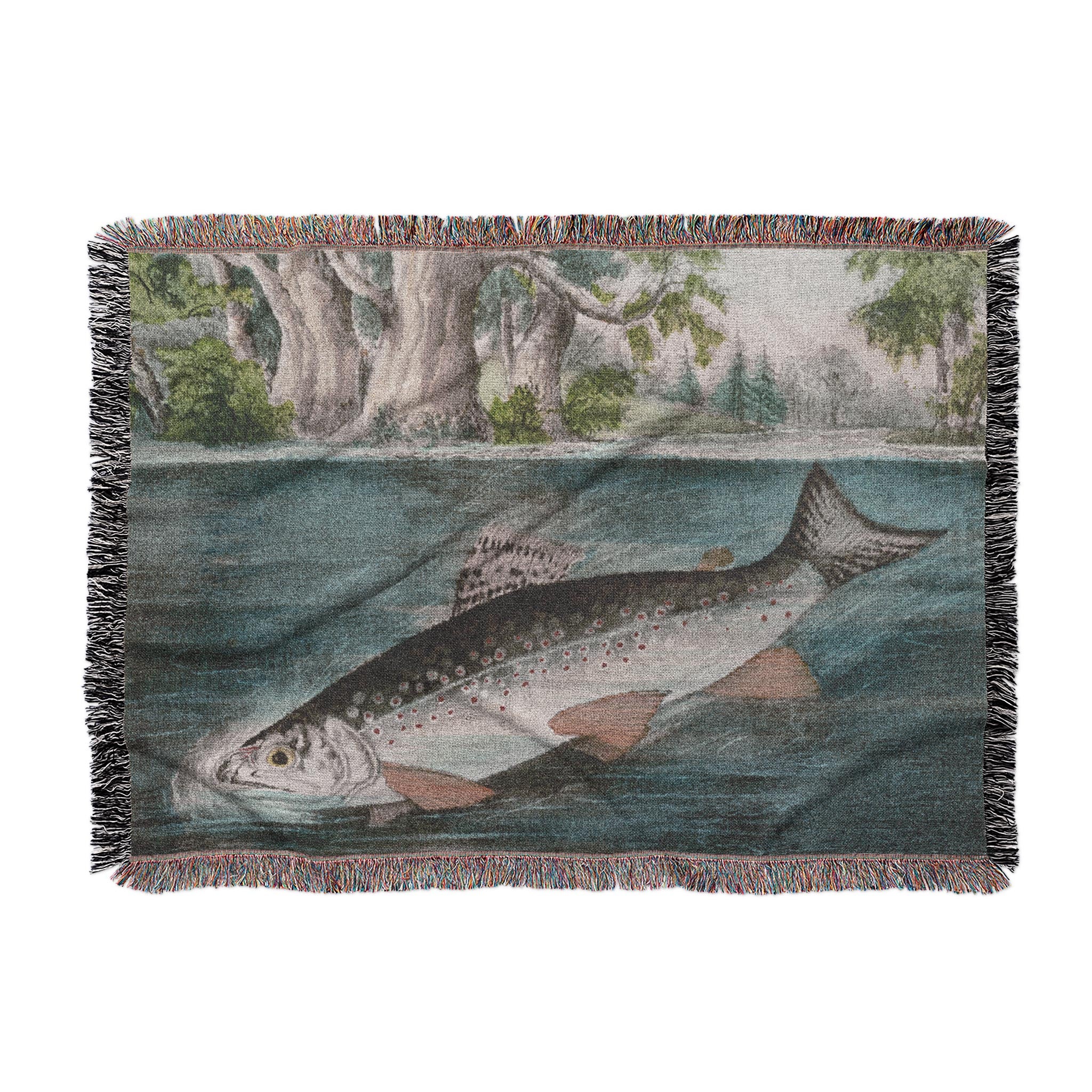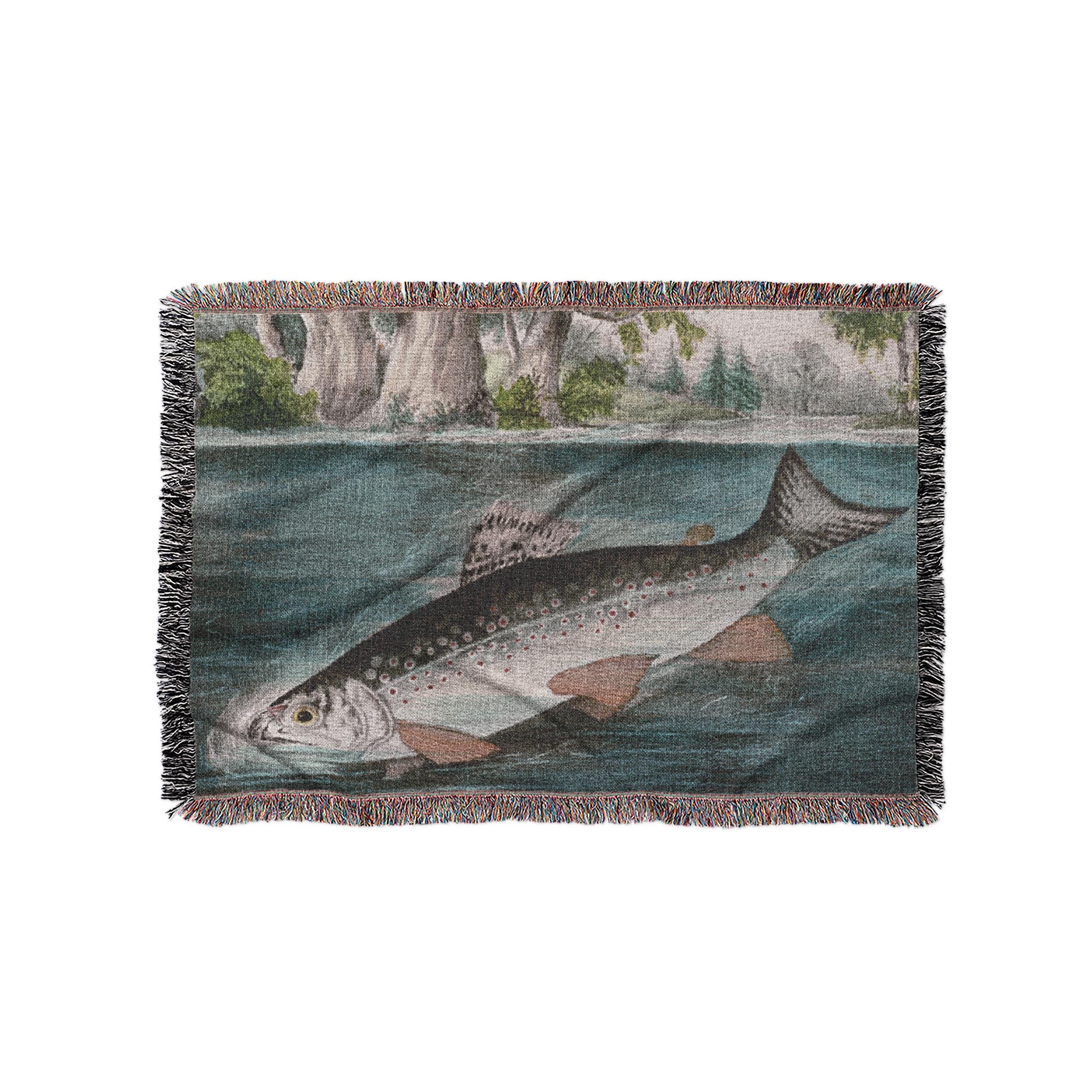 Hooked Fish Woven Throw Blanket