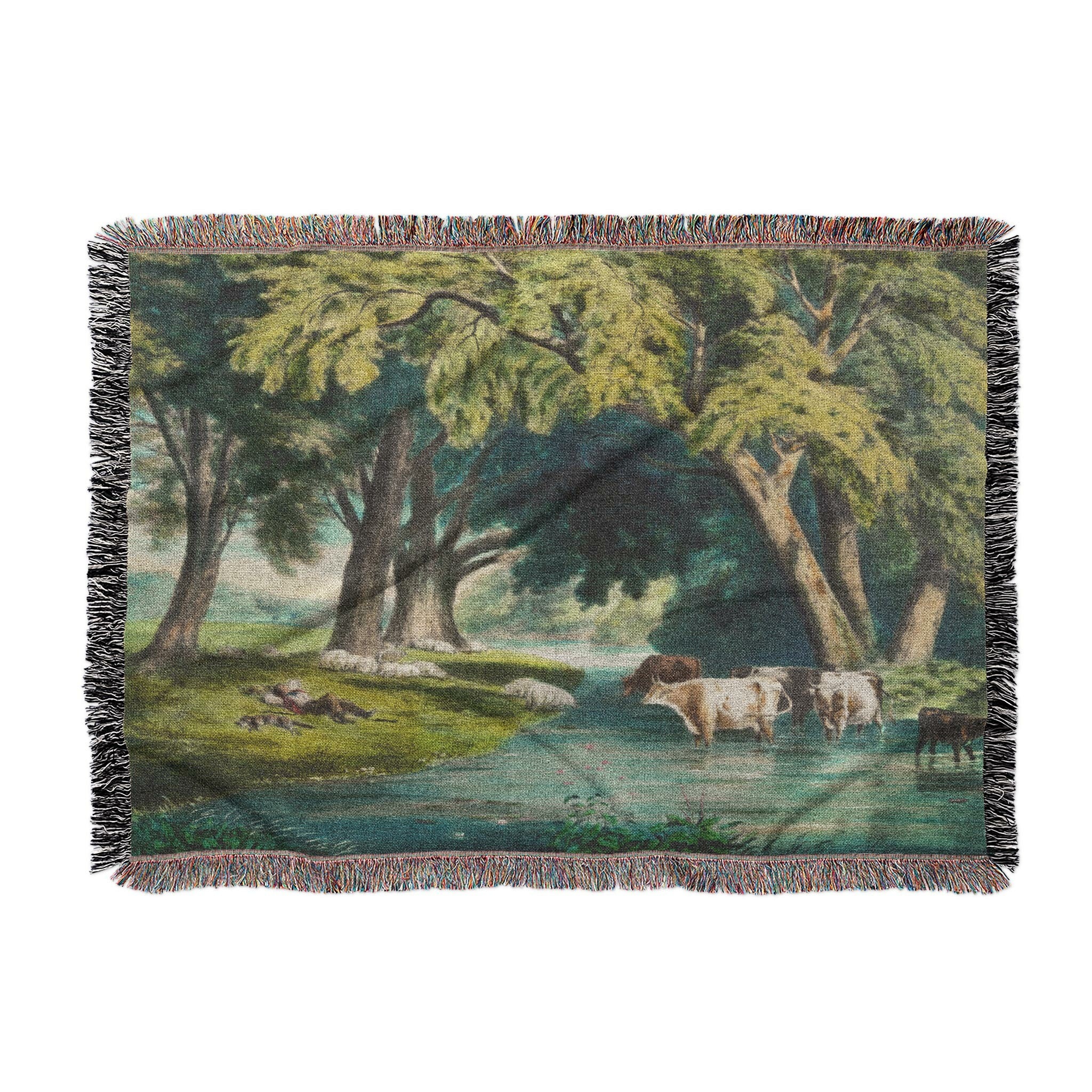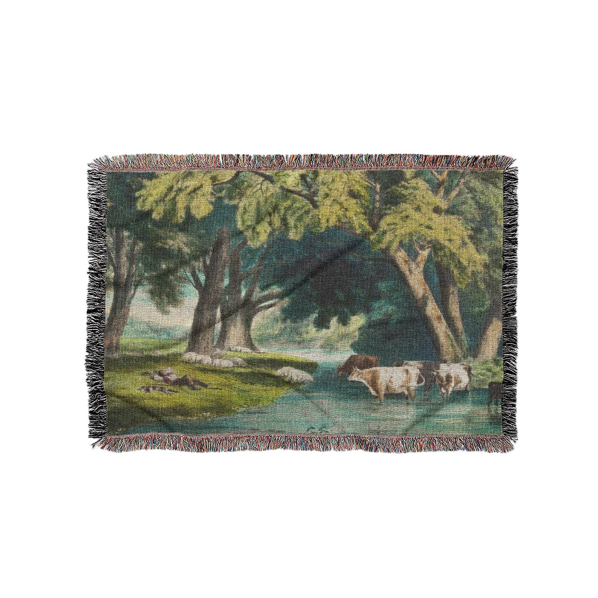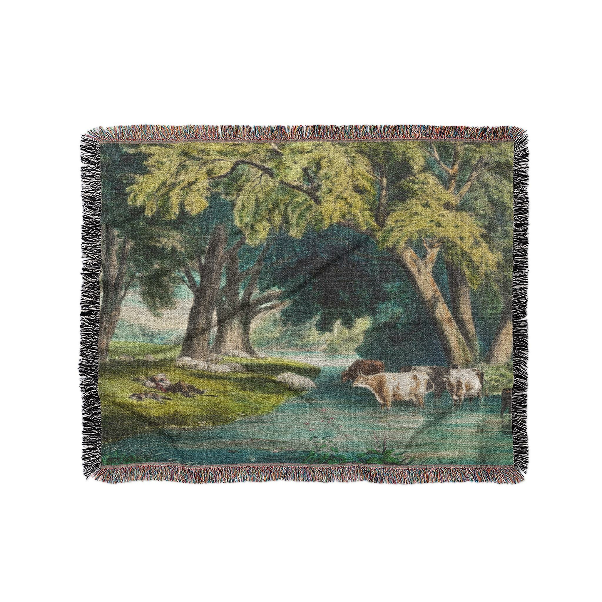 A quiet pastoral scene from the Currier and Ives archive, Summer Shade captures the timeless calm of cattle cooling off in a shaded stream beneath towering hardwoods. Soft natural tones and gentle detail give this design a warm, peaceful presence that fits beautifully in farmhouse, cottagecore, or vintage Americana spaces. It brings a sense of rest and rural charm to any room or setting, offering both visual comfort and historic character.
