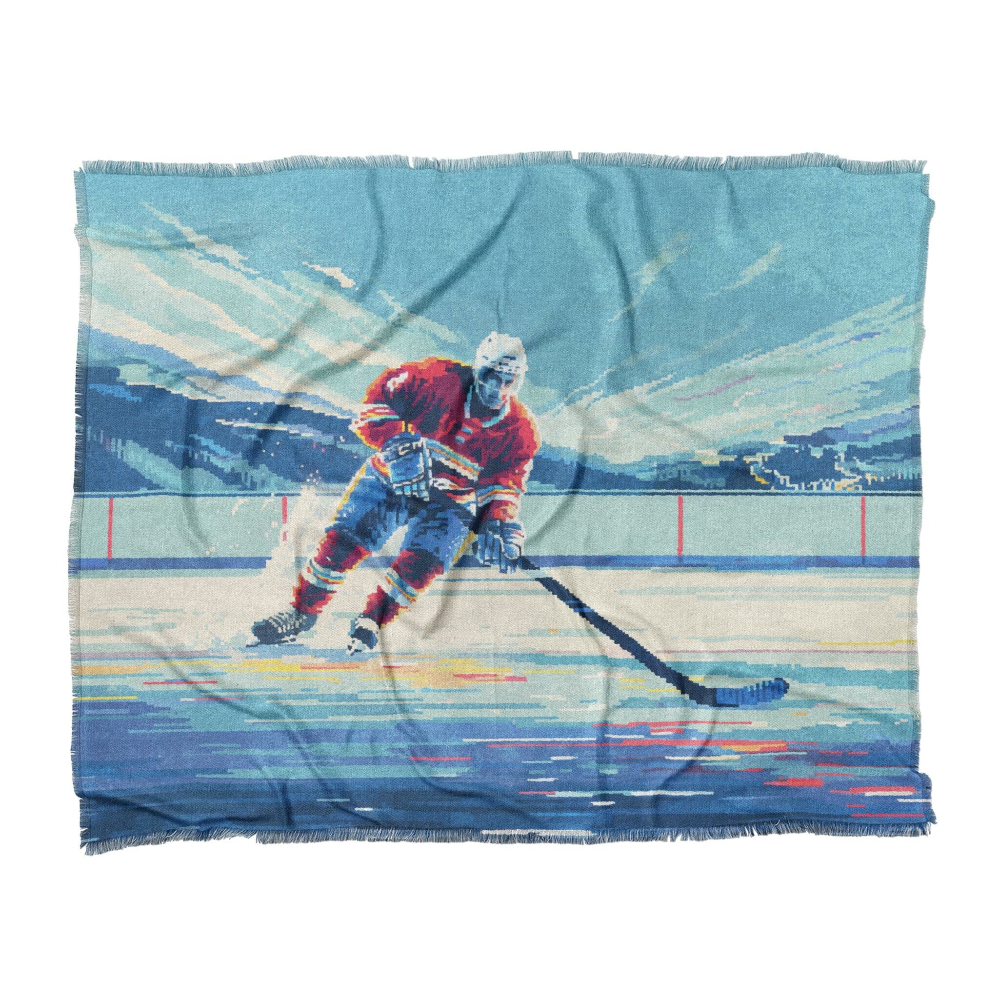 8 Bit Pond Hockey Woven Coverlet Bedspread