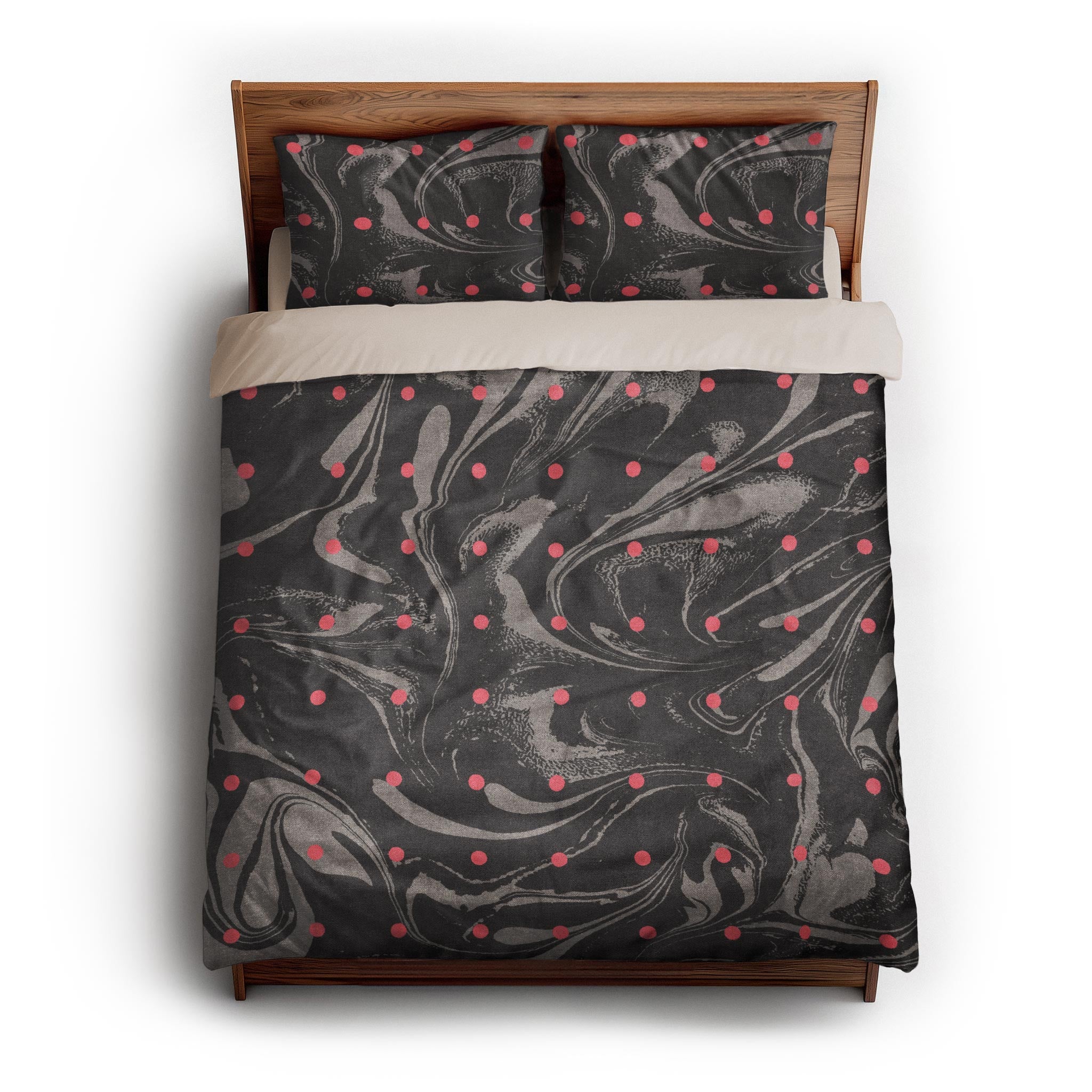 We made these for actual beds. Beds that get unmade, remade, and everything in between. The invisible zipper closure keeps it looking clean, while inside corner ties prevent bunching. Toss it in the wash, zip it back on, and it’s ready to go again. Art for your bed, without an upkeep headache.