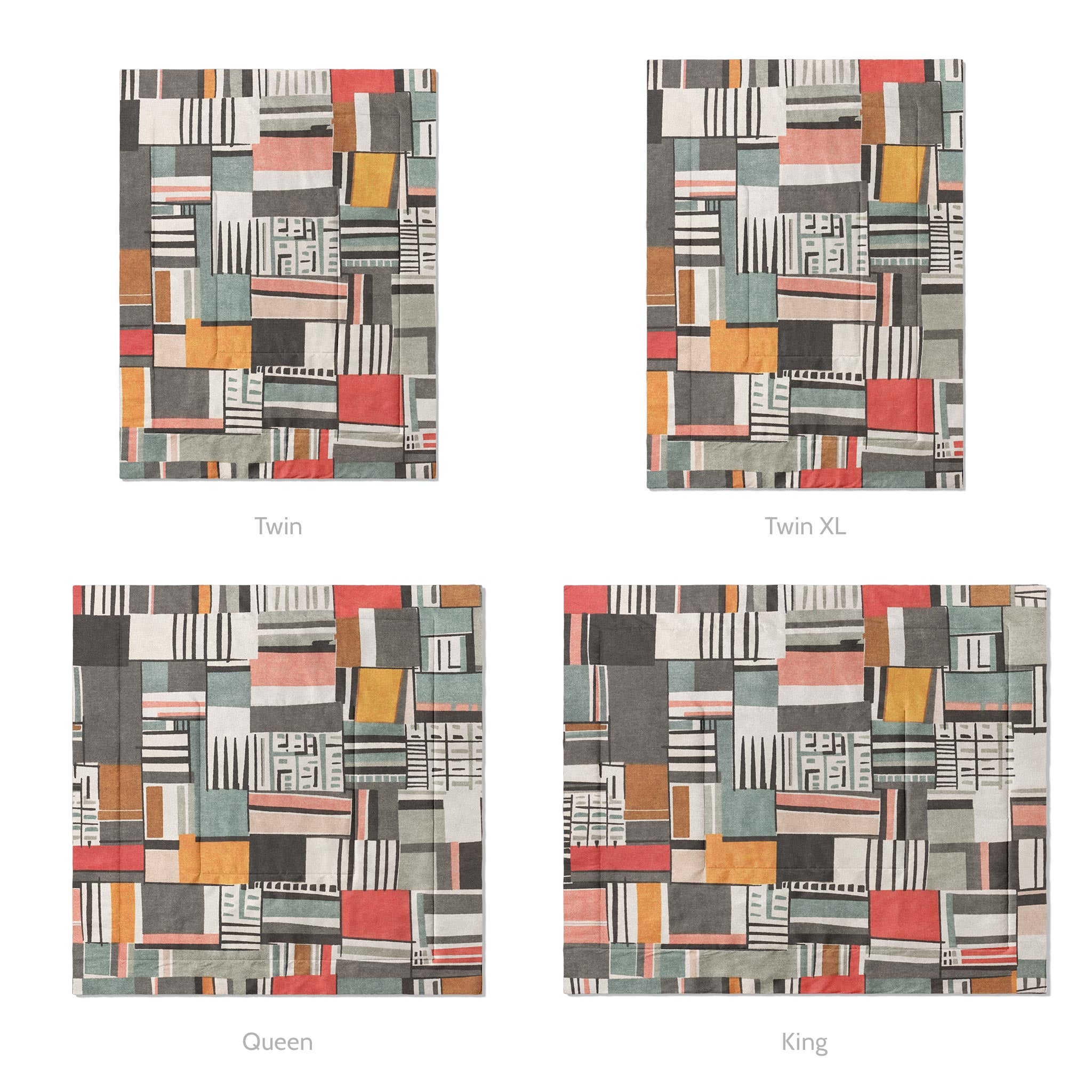 Our comforters are quilted with a double square pattern that keeps the fill evenly distributed and the shape intact so there won't be any bunching or thinning. The design is dye-sublimated directly into the fabric for lasting color that won’t fade, crack, or peel with use or washing.