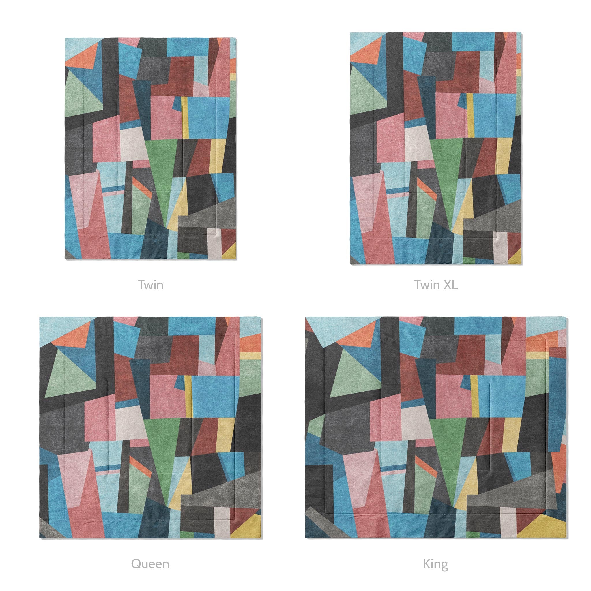 Our comforters are quilted with a double square pattern that keeps the fill evenly distributed and the shape intact so there won't be any bunching or thinning. The design is dye-sublimated directly into the fabric for lasting color that won’t fade, crack, or peel with use or washing.