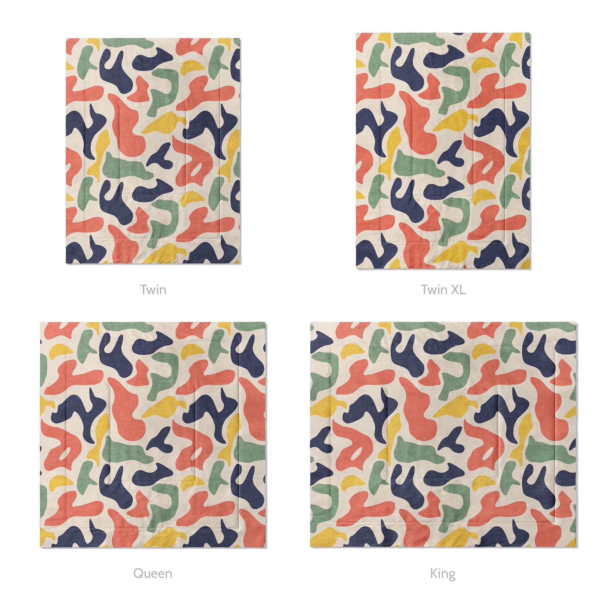Our comforters are quilted with a double square pattern that keeps the fill evenly distributed and the shape intact so there won't be any bunching or thinning. The design is dye-sublimated directly into the fabric for lasting color that won’t fade, crack, or peel with use or washing.