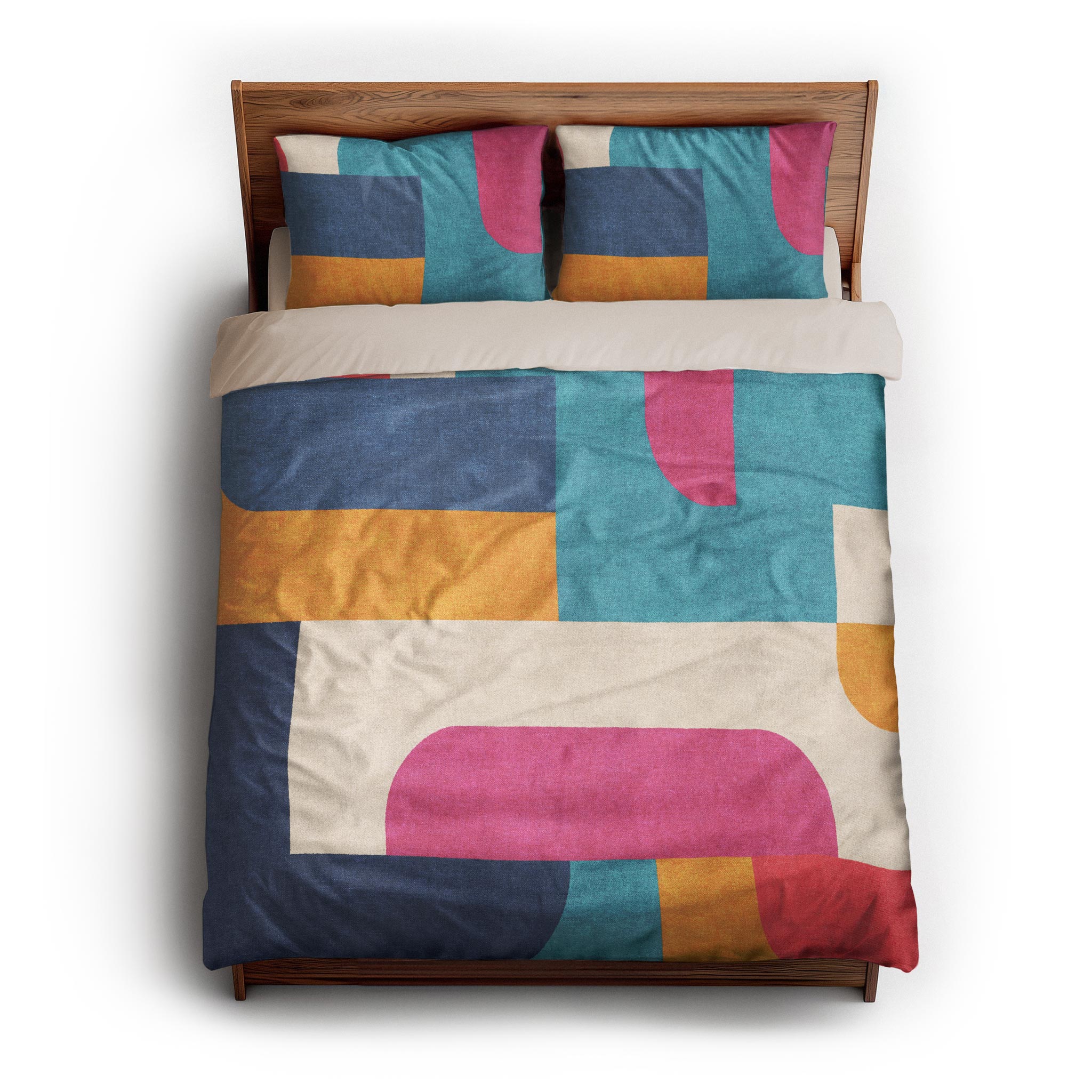 We made these for actual beds. Beds that get unmade, remade, and everything in between. The invisible zipper closure keeps it looking clean, while inside corner ties prevent bunching. Toss it in the wash, zip it back on, and it’s ready to go again. Art for your bed, without an upkeep headache.