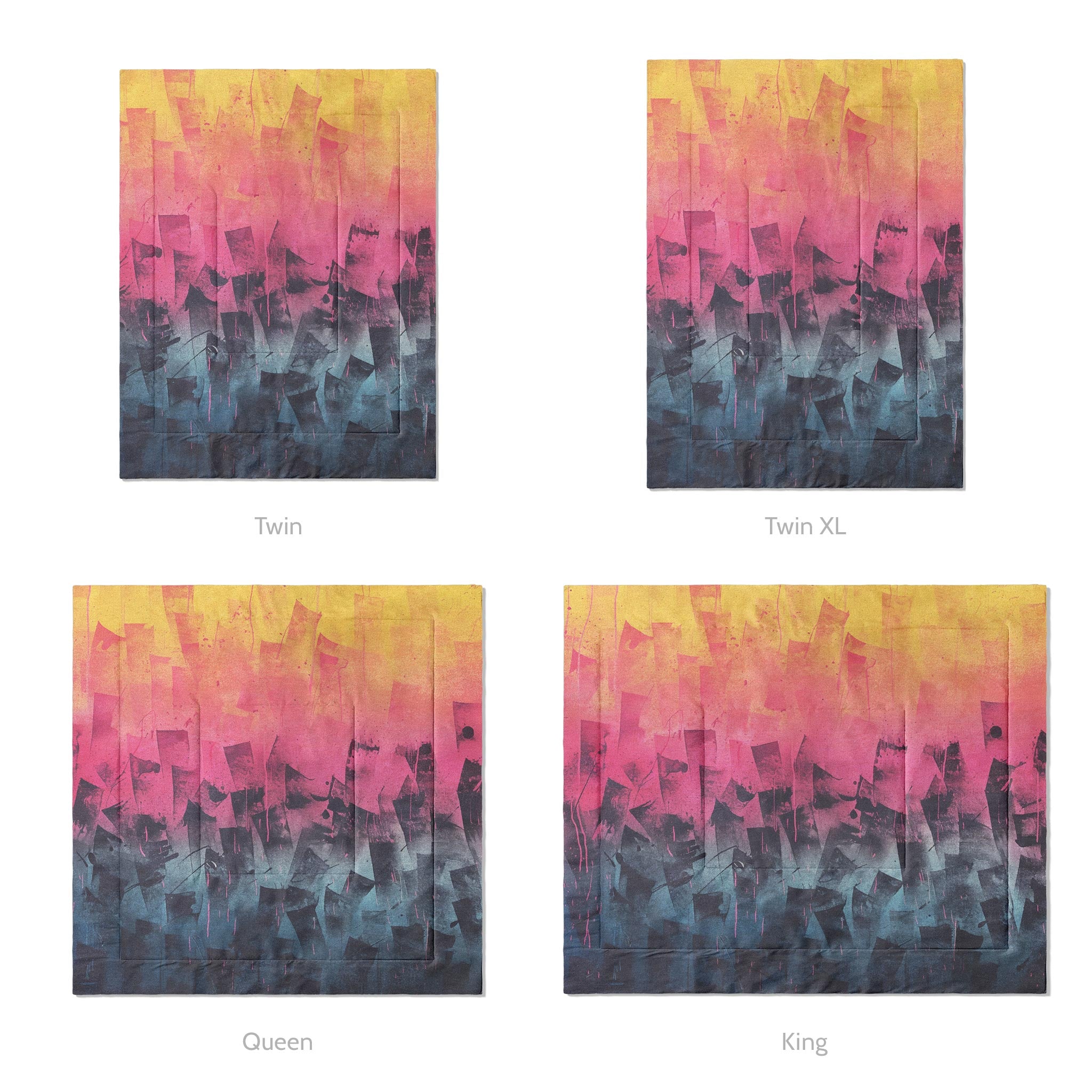 Our comforters are quilted with a double square pattern that keeps the fill evenly distributed and the shape intact so there won't be any bunching or thinning. The design is dye-sublimated directly into the fabric for lasting color that won’t fade, crack, or peel with use or washing.