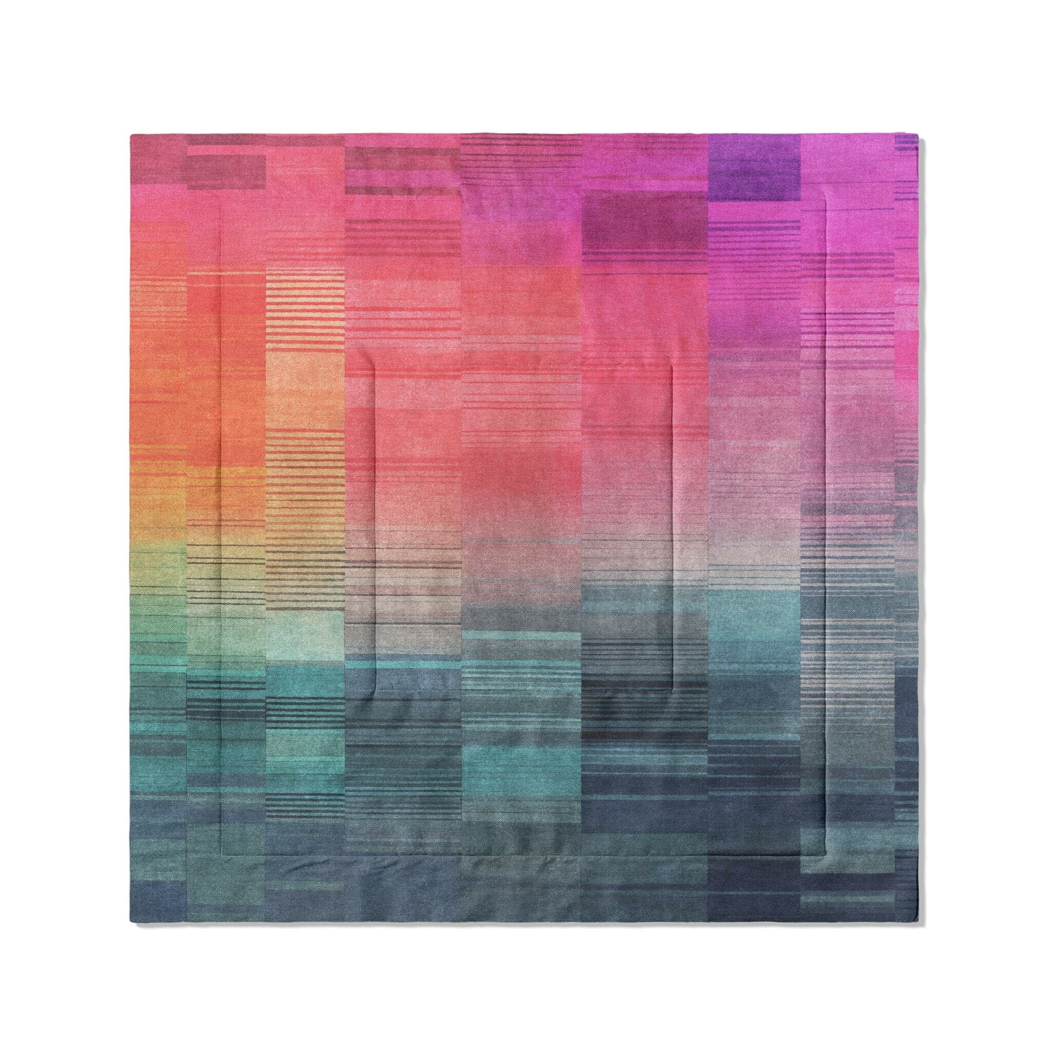 Our comforters are quilted with a double square pattern that keeps the fill evenly distributed and the shape intact so there won't be any bunching or thinning. The design is dye-sublimated directly into the fabric for lasting color that won’t fade, crack, or peel with use or washing.